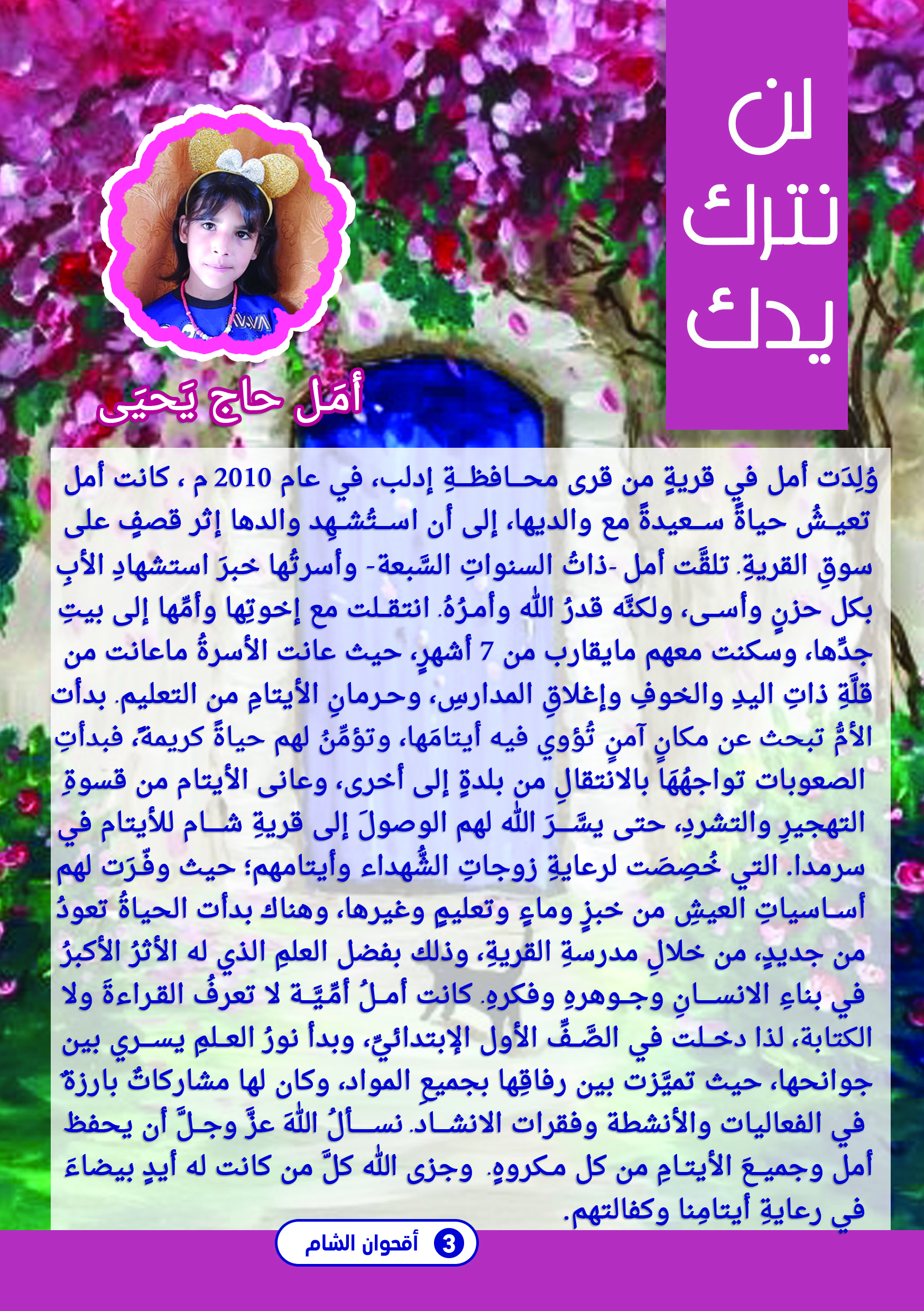 بحمد الله وتوفيقه... تمَّ إصدار العدد الثامن من مطوية أقحوان الشَّام، وهي مجلةٌ علميةٌ، وتعليميةٌ، وشرعيةٌ، وتربويةٌ، وثقافيةٌ، وترفيهيةٌ. تصدرشهرياً، وتستهدف اليافعين من عمر 7 الى 13 سنة.