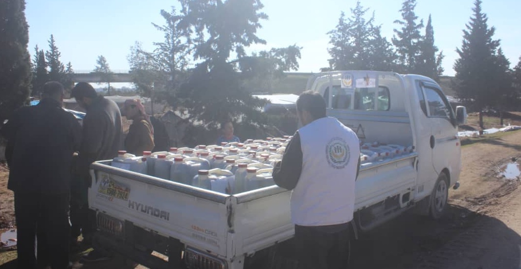 توزيع 1250 لتر مازوت على العوائل المنكوبة والمتضررة حول سراقب