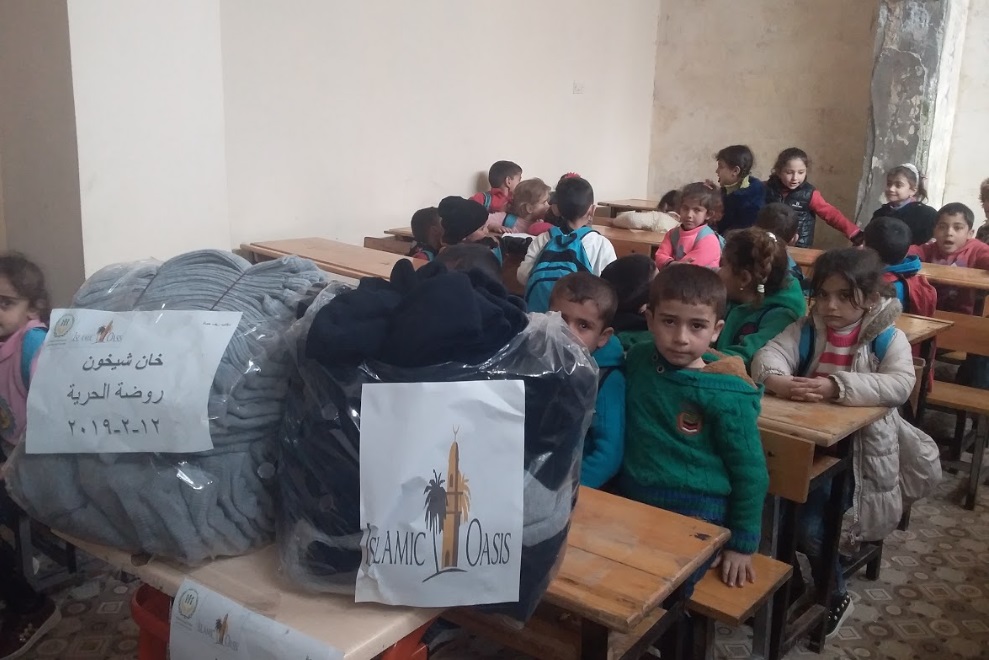 توزيع بناطيل على طلاب روضة الحرية بخان شيخون