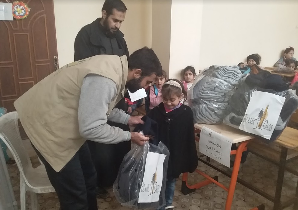 قام فريقنا بريف حماه بتوزيع بناطيل على طلاب روضة الحرية بخان شيخون بدعم من اسلاميك اويسيس