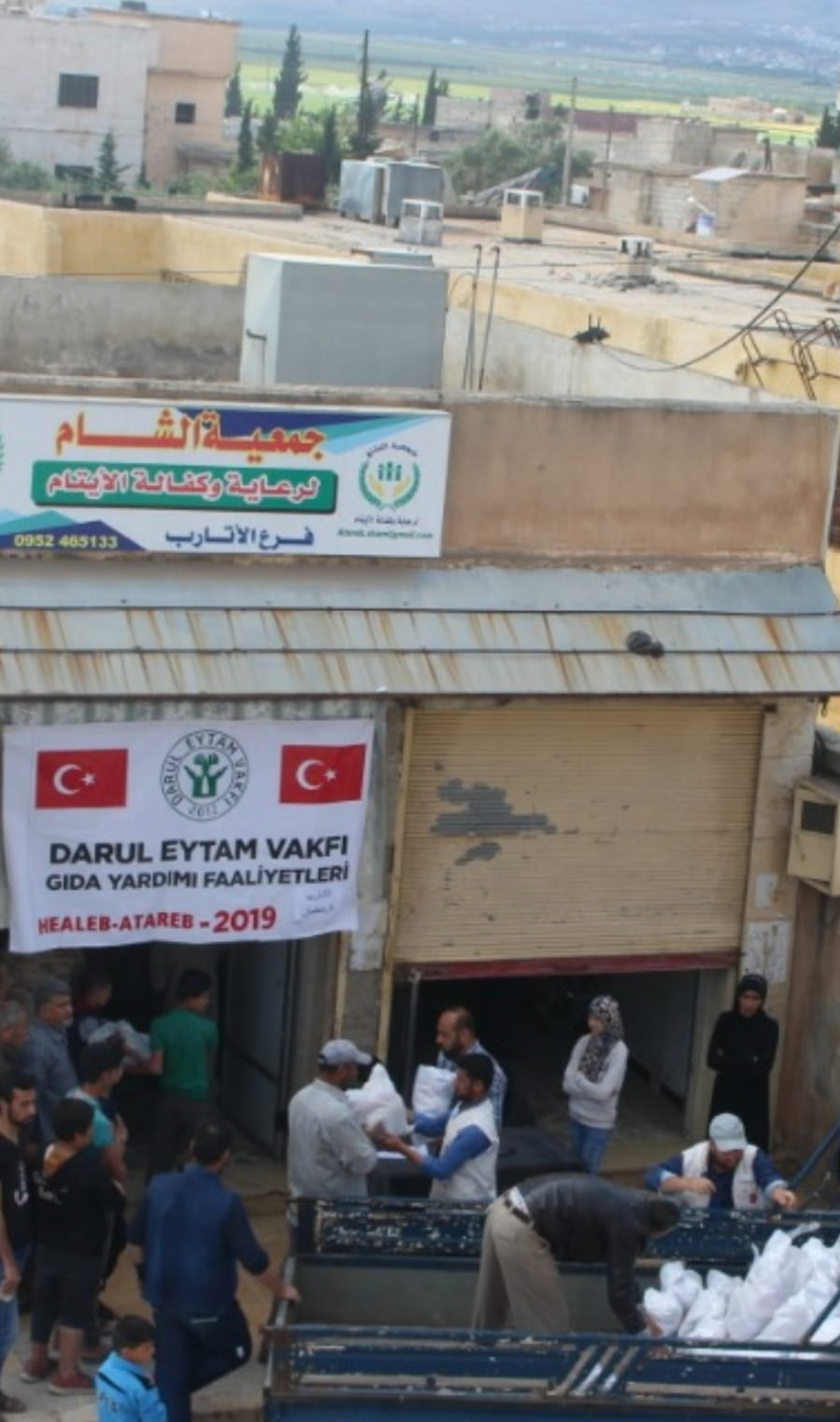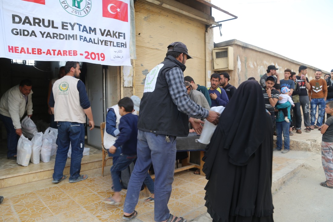 تجهيز وتوزيع 450 سلة غذائية في الاتارب بدعم من وقف دار الأيتام التركية