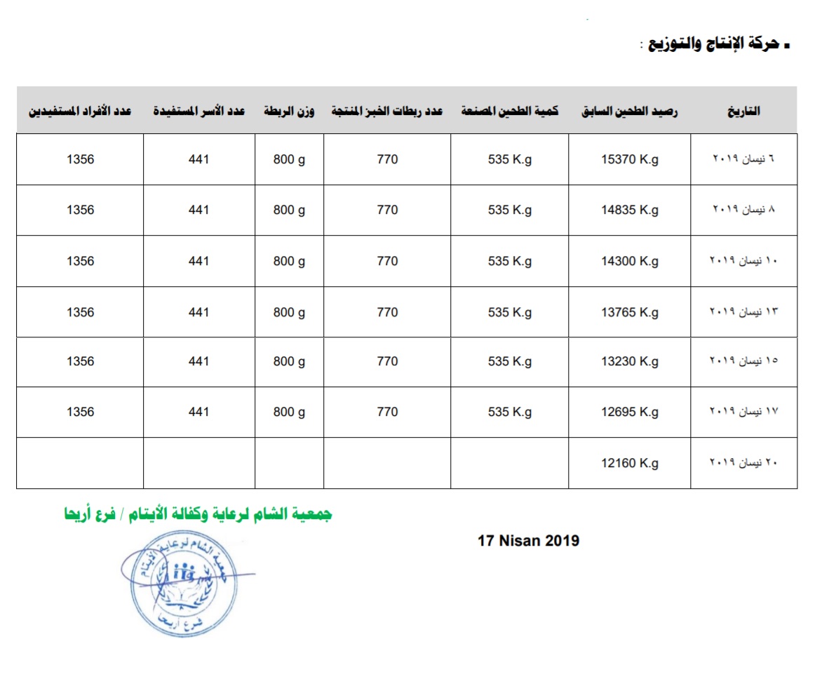 تقرير عن حركة انتاج الخبز بمدينة اريحها حيث يتم انتاج وتوزيع 770 ربطة خبز يوميا