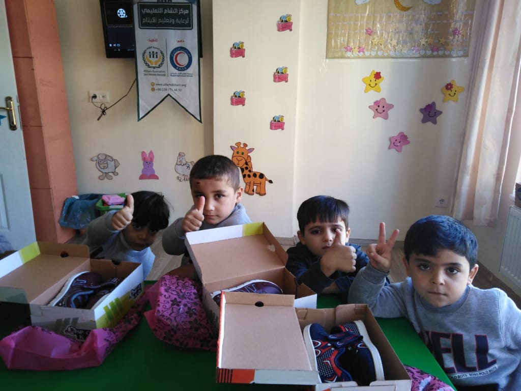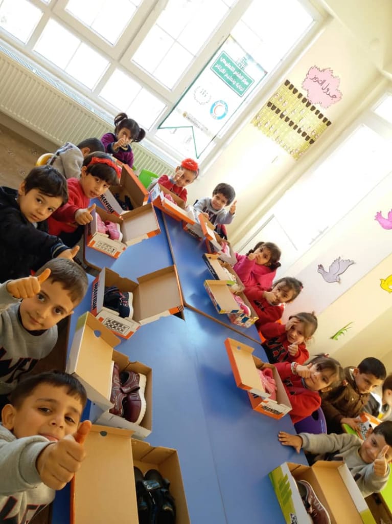 توزيع احذية على أطفالنا الايتام بروضة براعم الشام في غازي عنتاب بتاريخ ٣٠ /١٠/٢٠١٩ بدعم من الهلال الأحمر الكويتي