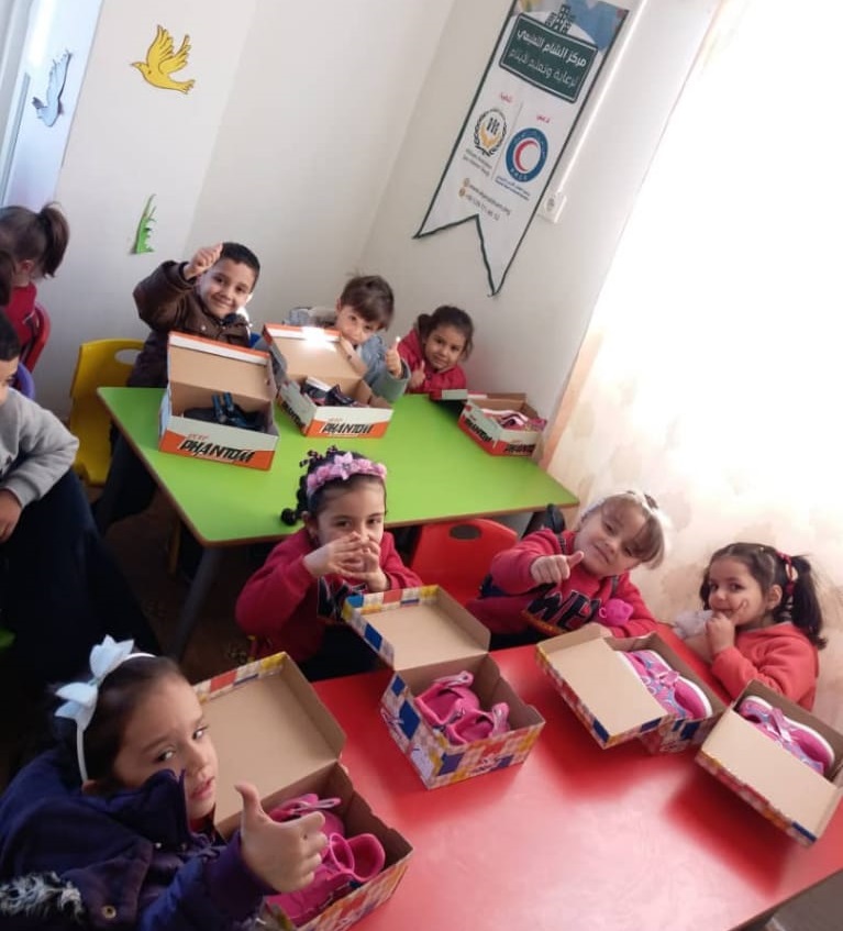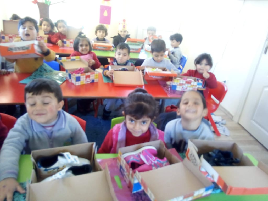 توزيع أحذية على أطفالنا بروضة براعم الشام في غازي عنتاب