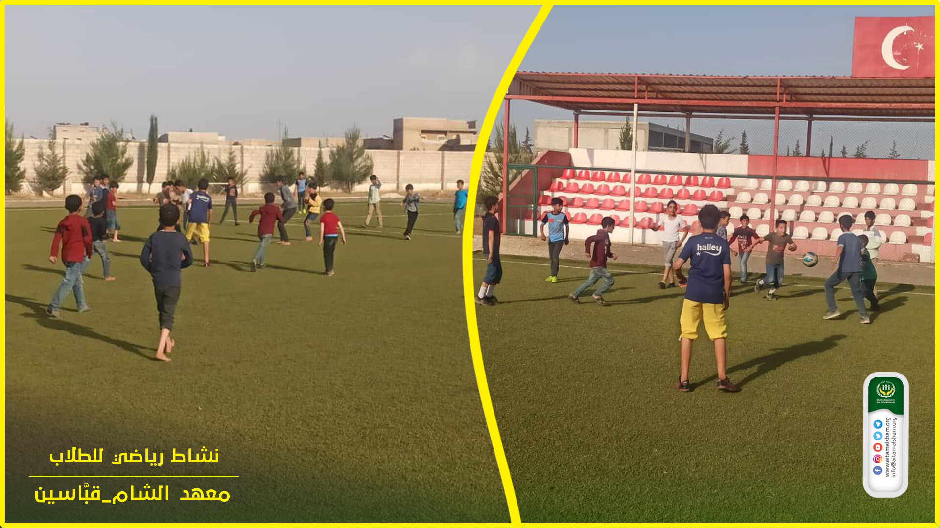 #نشاط_رياضي_ترفيهي لـــ #معهد_شام_للأيتام بقباسين حيث قمنا باصطحاب الطلاب إلى #ملعب #كرة_القدم لرسم الابتسامة والفرحة على وجوههم ولإثراء روح التعاون وممارسة نشاط رياضي جماعي فيما بينهم . جزى الله خيرا كل من ساهم بهذا النشاط.