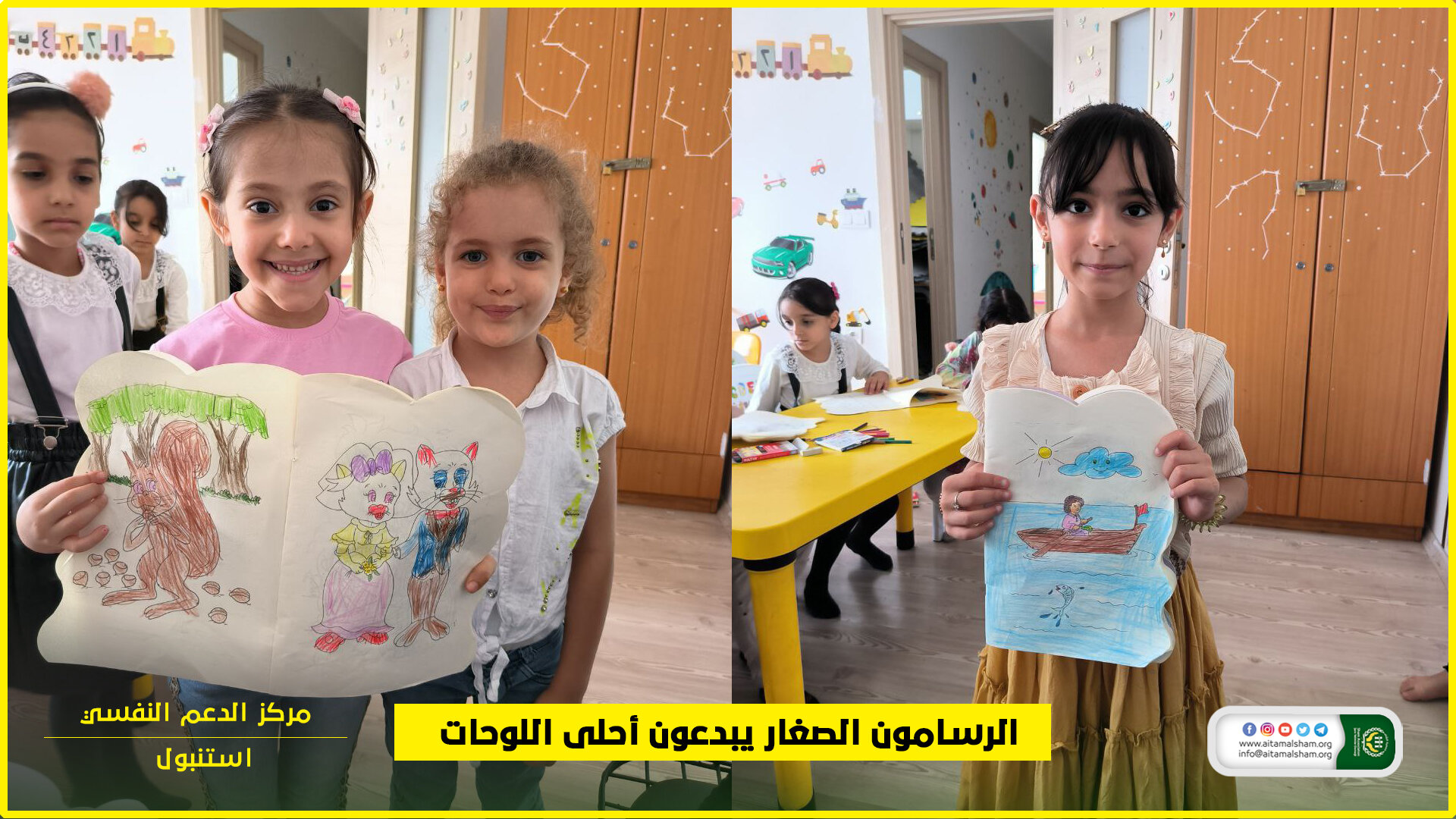 جانب من نشاط درس الرسم والتلوين المحبب لدى براعمنا الرسامون الصغار في مركز الدعم النفسي في اسطنبول