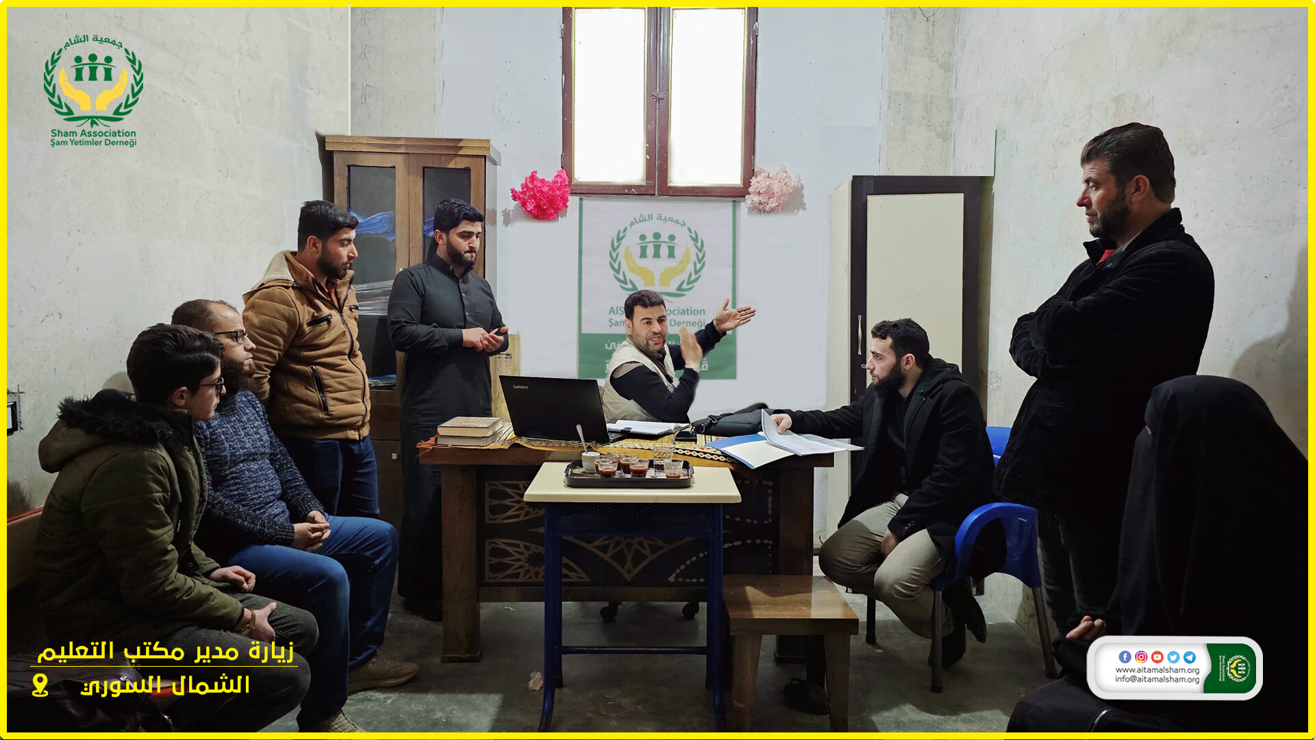 قام السيد مدير المكتب التعليمي في جمعية الشام بزيارة مكتب التربية والتعليم التابع للجمعية في الشمال السوري حيث اجتمع مع المشرفين والمشرفات المسؤولين عن المراكز وقام بزيارات ميدانية لجميع المراكز بهدف الاطلاع سير العمل ومتابعته