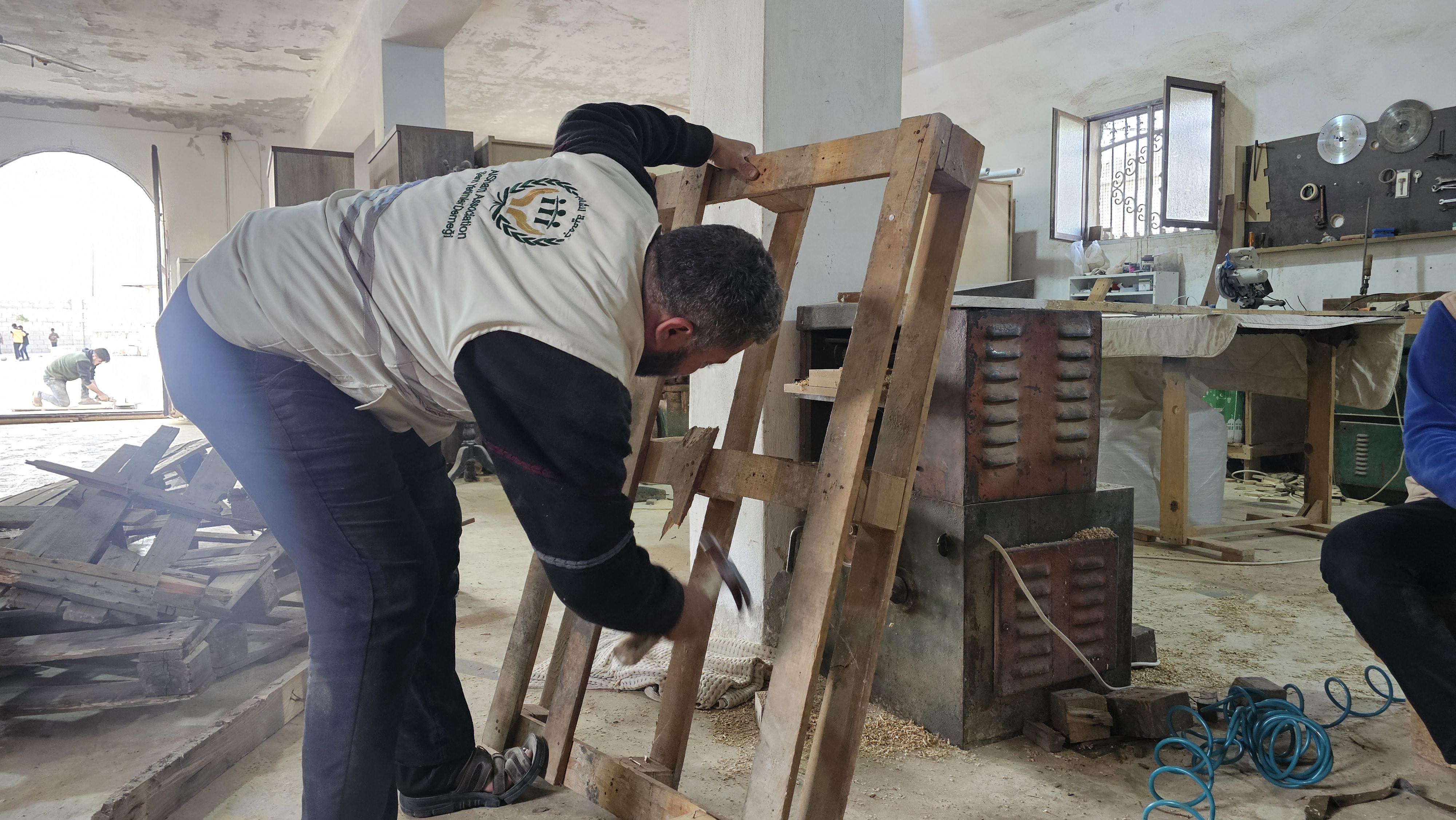 لذلك حرص كادرنا في #صالة#الموبيليا في #قرية_نريمان على إعادة تدوير الطبليات لإعادة استخدامها مرة أخرى