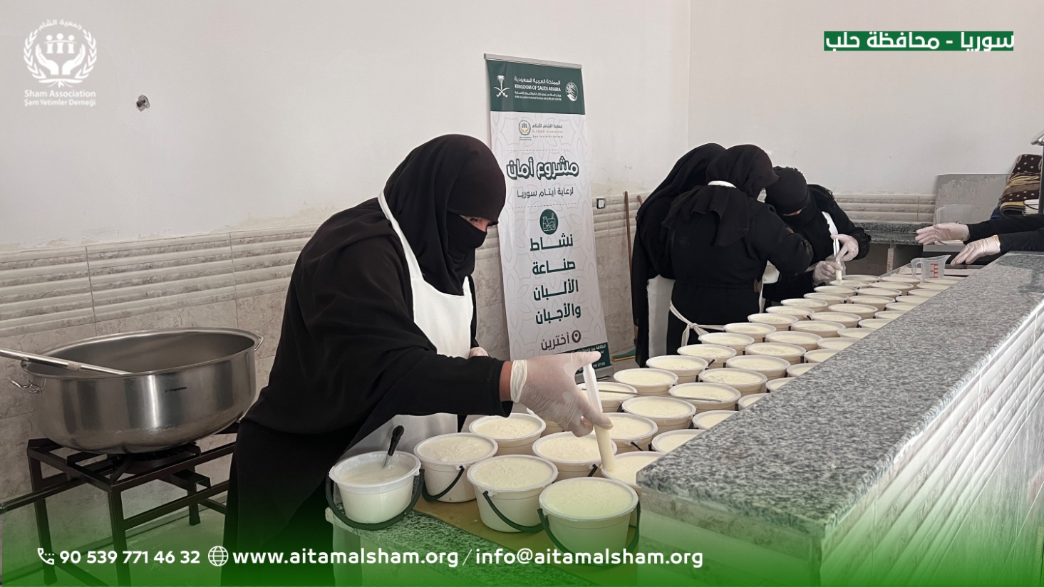 نفذ مركز الملك سلمان للإغاثة والأعمال الإنسانية أمس الأول دورة لتأهيل 20 امرأة من أمهات الأيتام في مدينة أخترين شمال سوريا على صناعة الألبان والأجبان ، ضمن مشروع "أمان" لرعاية أيتام سوريا؛ وذلك بهدف مساعدتهن على بناء مستقبل أفضل لأطفالهن، وتوفير فرصة لإعالة أسرهن بكرامة.