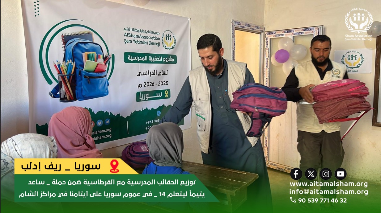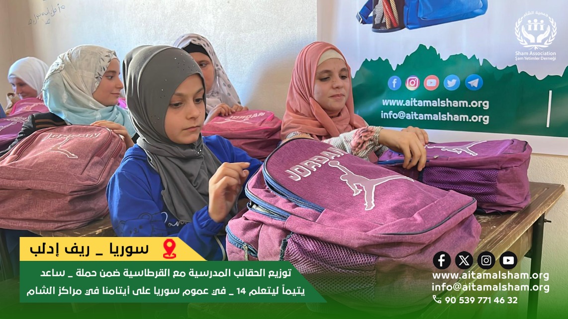 توزيع الحقائب المدرسية على طلابنا الأيتام في مراكز الشام