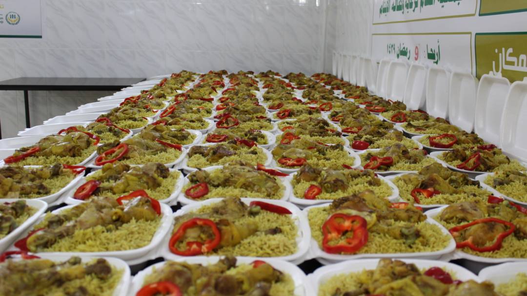 مطبخ الشام الخيري باريحا يواصل تقديم وجبات افطار لعوائل الايتام لليوم التاسع على التوالي في مدينة اريحا وكانت وجبة اليوم كبسة بالدجاج / عدد الاسر المستفيدة: ١٠٠