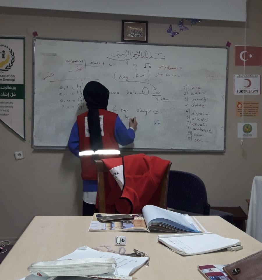 بدعم من الهلال الاحمر التركي درس لأمهات الايتام من داخل وخارج الدار دروس اسبوعية في دار السلطان عبد الجميد في تعلم اللغة التركية