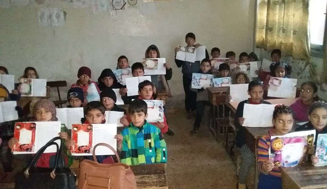 توزيع جلاءات الفصل الأول على أبنائنا بمدرسة الشام ببلدة كللي