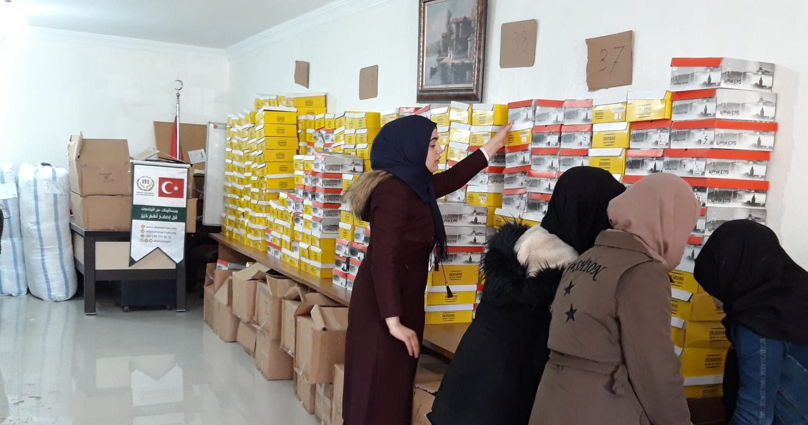 الحمد لله تم اليوم البدء بتوزيع 1700 حذاء و1700 جاكيت و1700 جورب على عوائل الايتام في غازي عنتاب مقدمة من هيئة الاغاثة الاسلامية اسلاميك ريليف ضمن حملة لنقف معهم ونخفف من معاناتهم