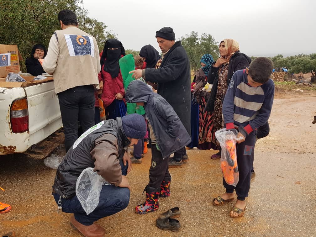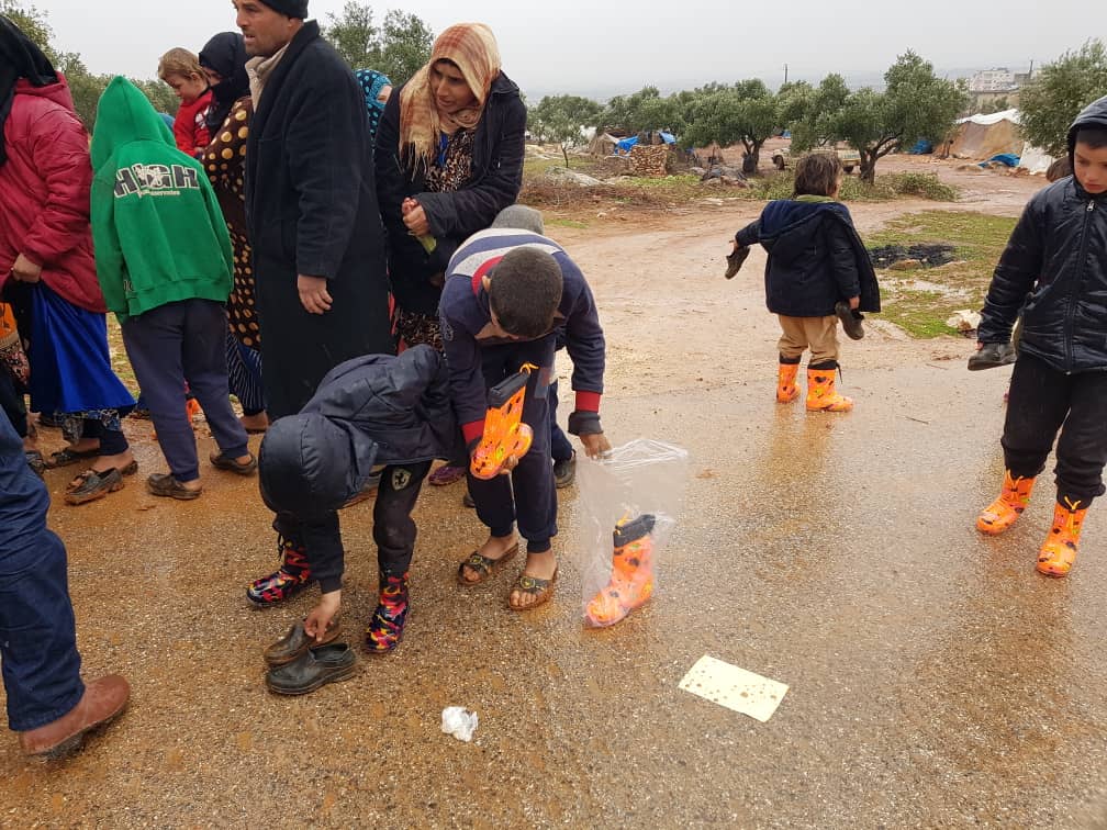 توزيع الجزمات الشتوية على الايتام في الأتارب مقدمة من يتيم دانشما جزاهم الله خيرا