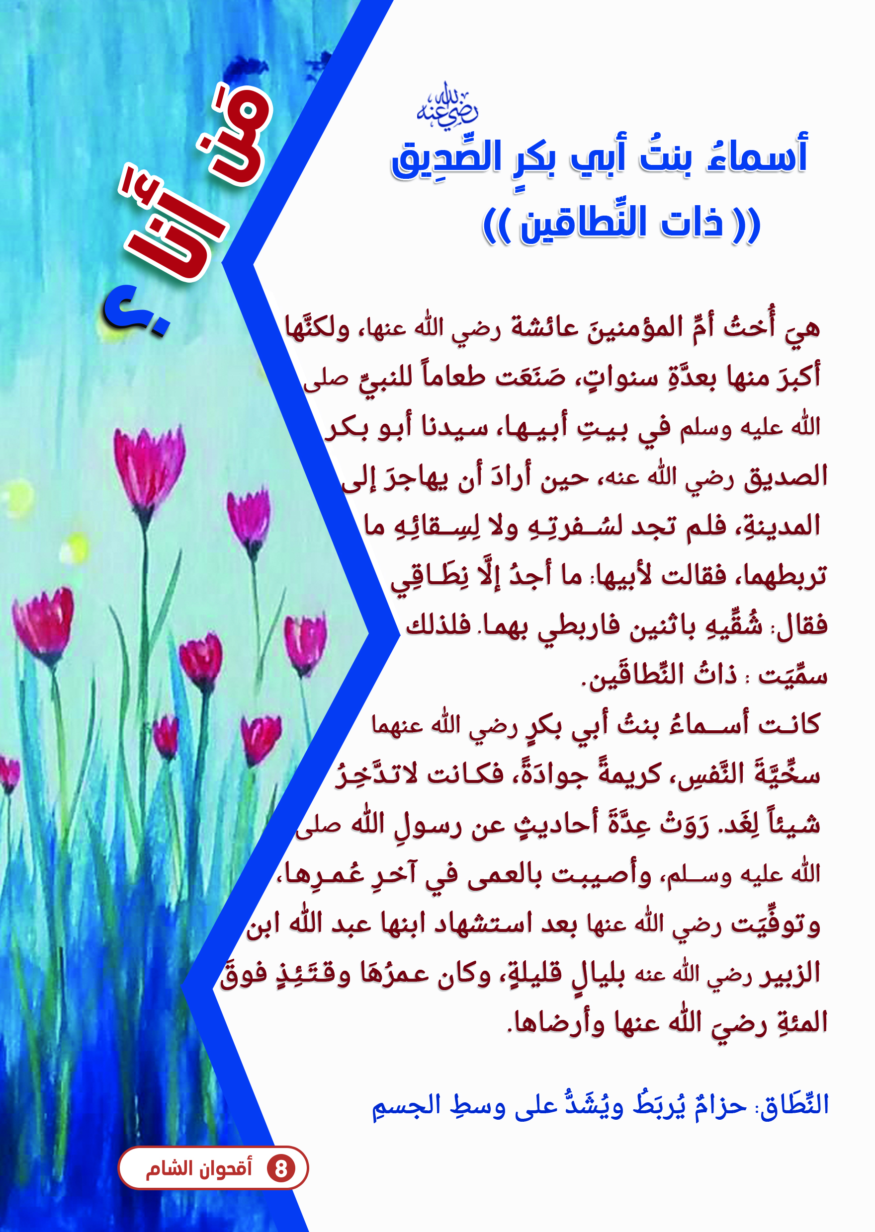 بحمد الله وتوفيقه... تمَّ إصدار العدد السادس من مطوية أقحوان الشَّام، وهي مجلةٌ علميةٌ، وتعليميةٌ، وشرعيةٌ، وتربويةٌ، وثقافيةٌ، وترفيهيةٌ. تصدرشهرياً، وتستهدف اليافعين من عمر 7 الى 13 سنة.