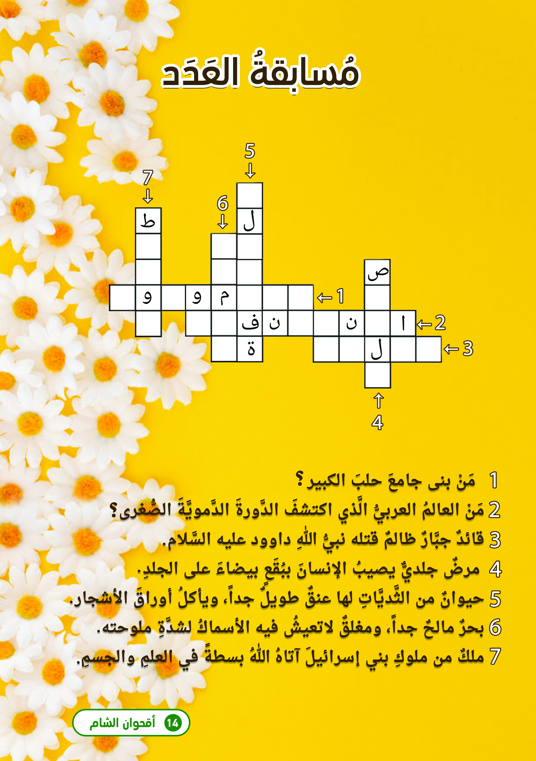 بحمد الله وتوفيقه... تمَّ إصدار العدد الثَّاني من الإصدار الثَّاني من مطوية أقحوان الشَّام، وهي مجلةٌ علميةٌ، وتعليميةٌ، وشرعيةٌ، وتربويةٌ، وثقافيةٌ، وترفيهيةٌ. تصدرشهرياً، وتستهدف اليافعين من عمر 7 الى 13 سنة.
