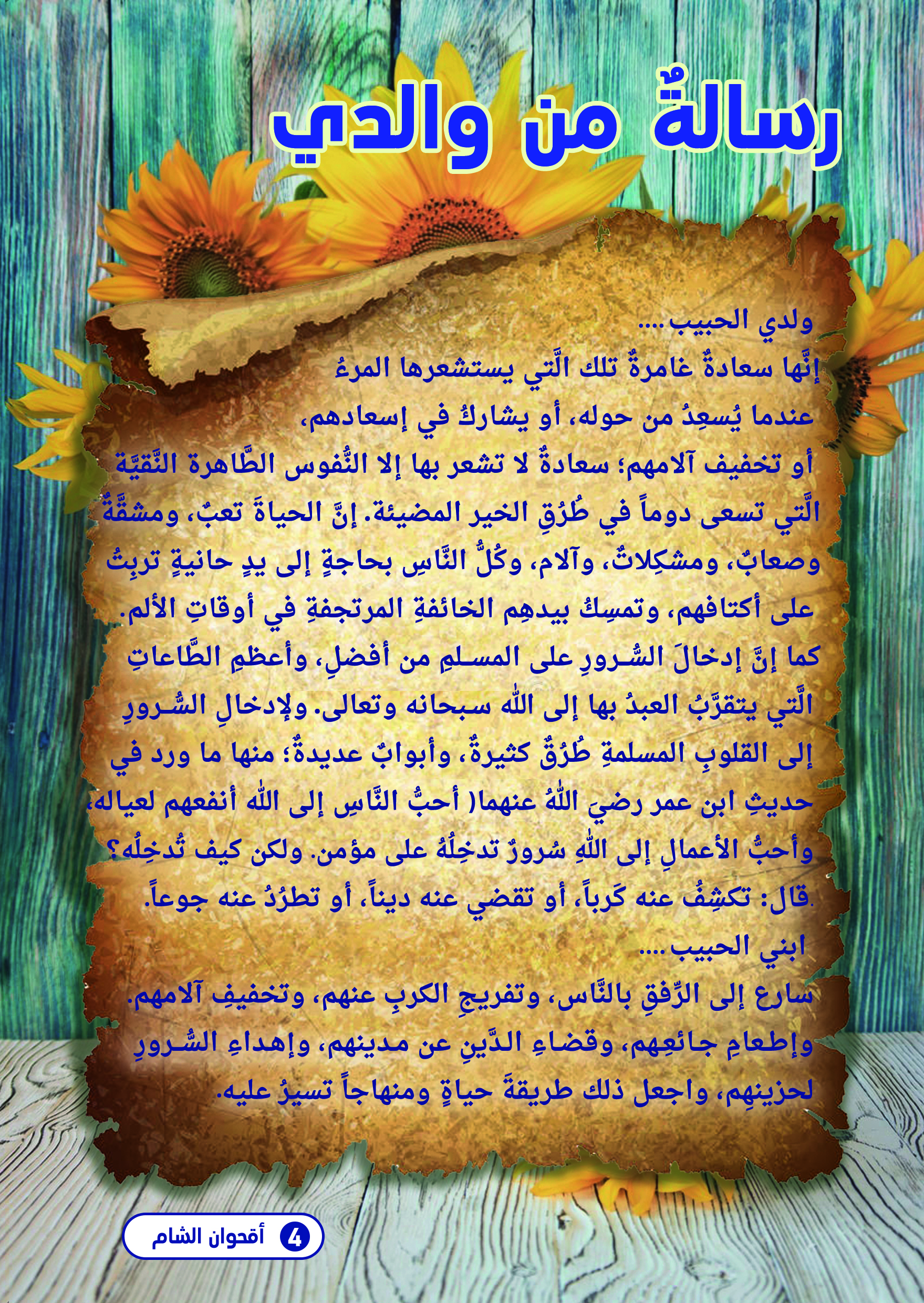 ـــ بفضل الله وحمده ـــ صدر العدد السادس من الإصدار الثَّاني من مطويَّة أُقحوان الشَّام التي تصدرها جمعية الشَّام للأيتام ..
