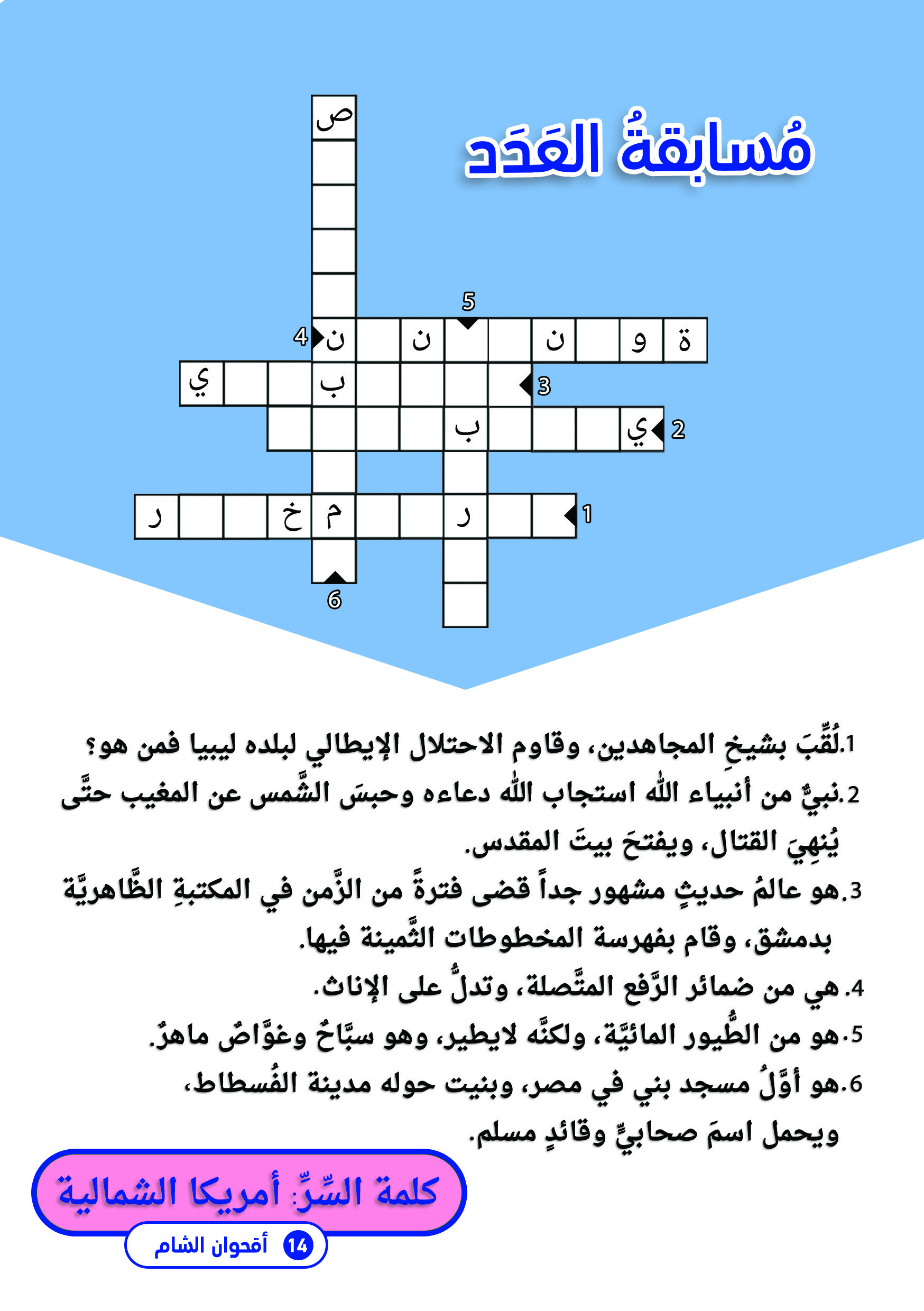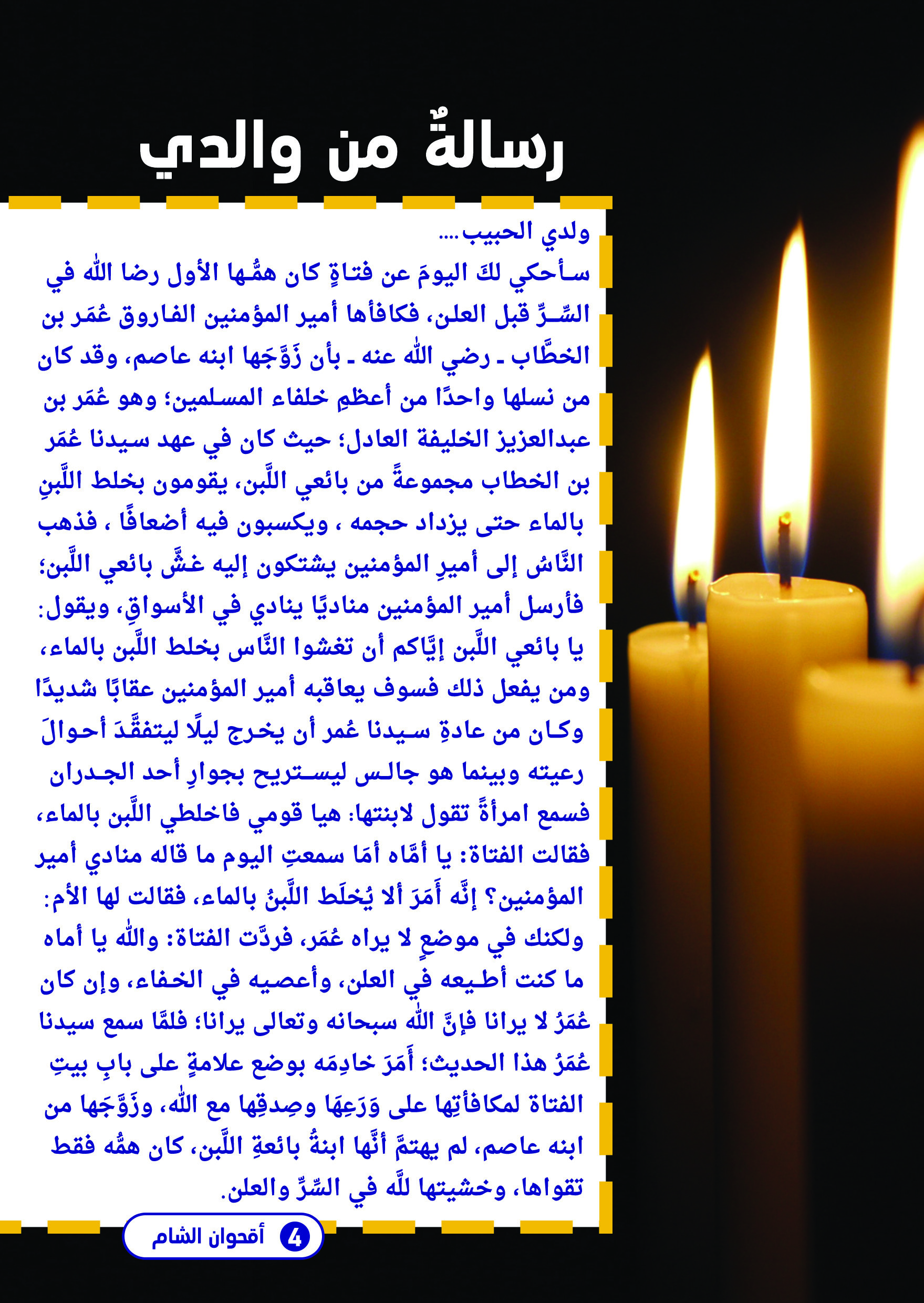 تم بفضل الله وحمده صدور العدد الثاني عشر من الإصدار الثاني من مطوية أقحوان الشام، وهي تحوي مواضيع مفيدة وممتعة حيث تحدثت في هذا العدد عن نبي الله يوشع بن نون عليه السلام، وعن قصة بائعة اللبن وعمر الفاروق رضي الله عنه بالإضافة إلى صفحة كلمة السر المحببة وصفحات أخرى مميزة، أتمنى لكم قراءة ممتعة ومفيدة.
