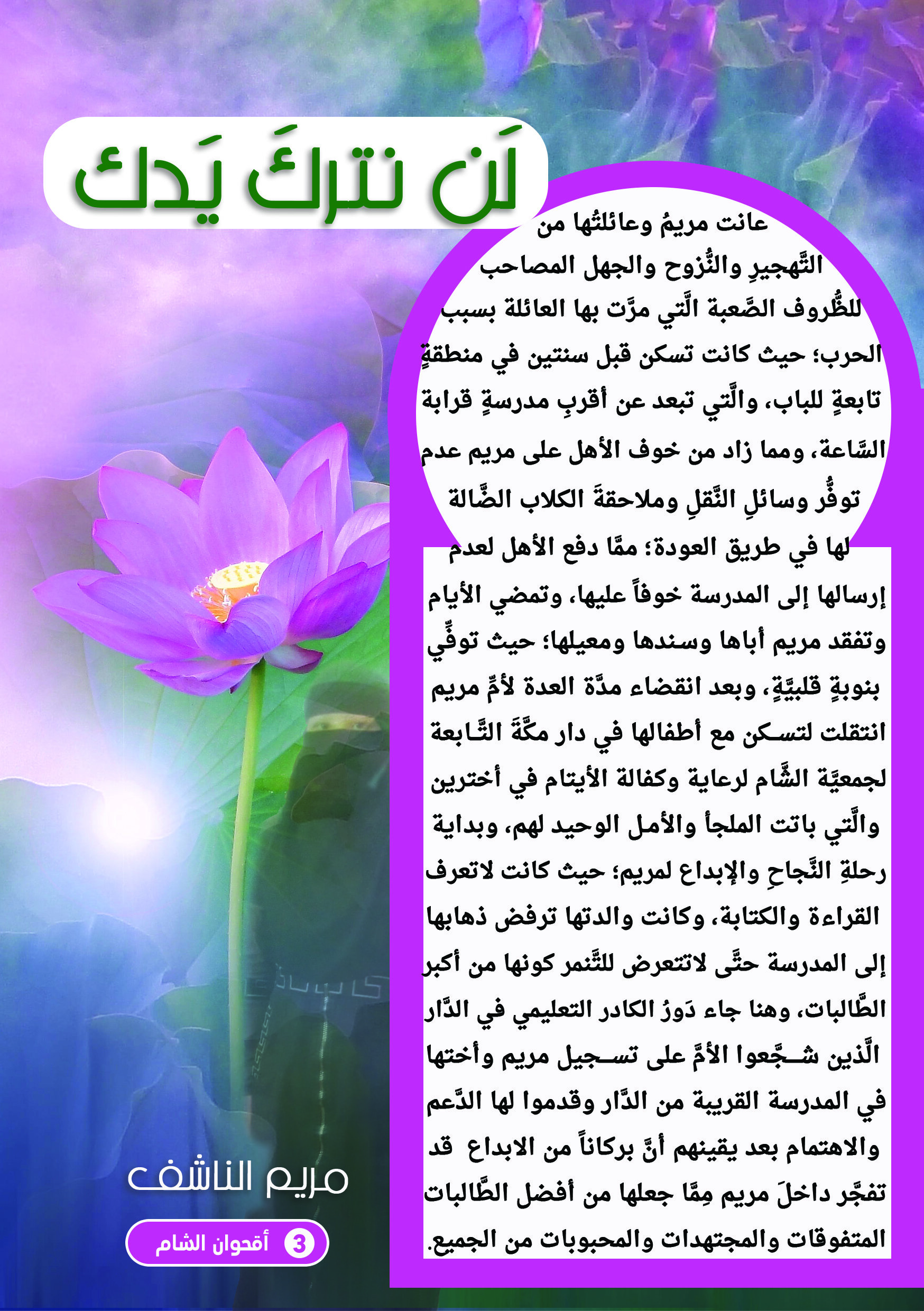 تم بفضل الله وحمده صدور العدد الأول من الإصدار الثالث من مطوية أقحوان الشام، وهي مطوية مؤلفة من ست عشرة صفحة تحوي مواضيع مفيدة وممتعة ..