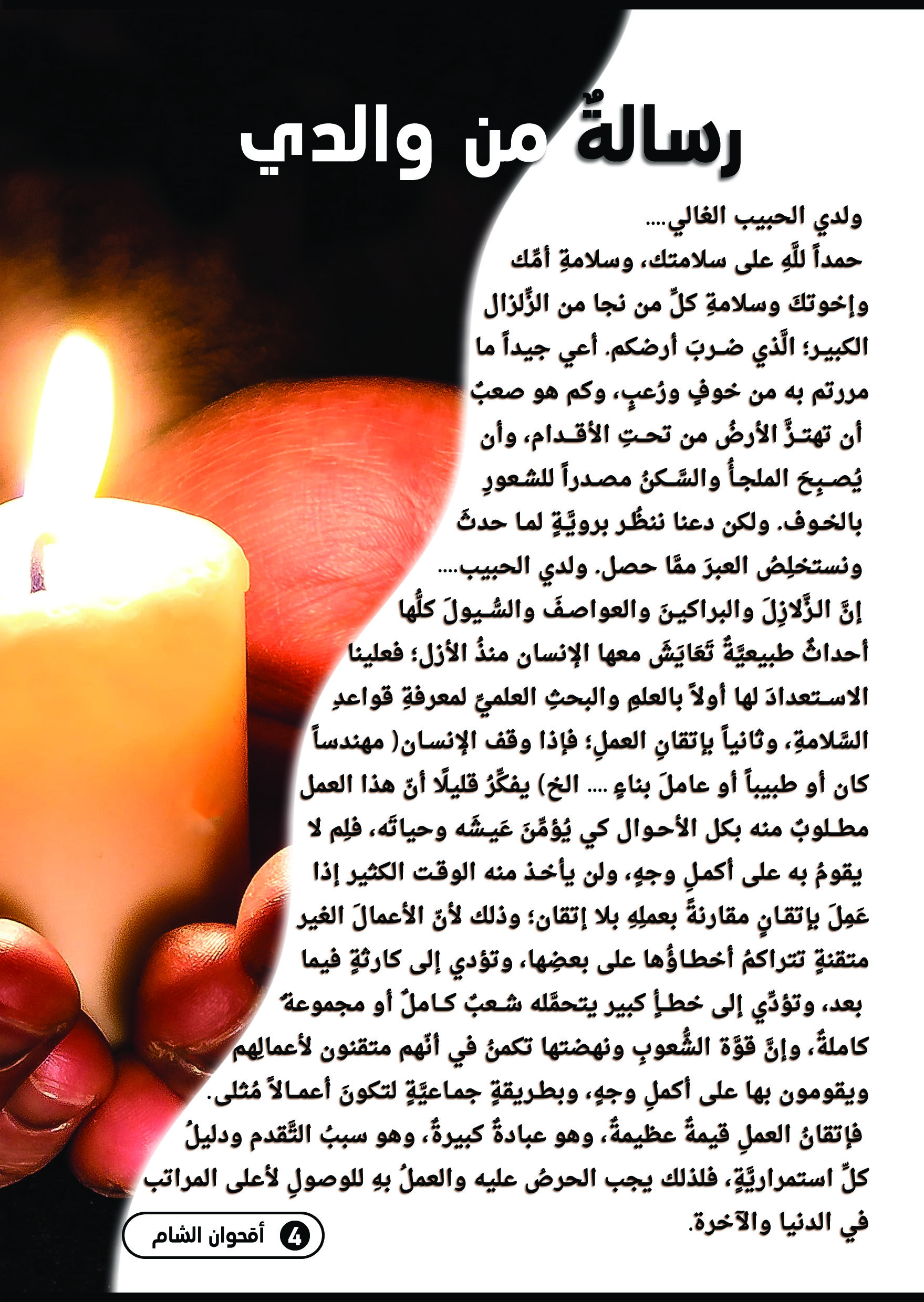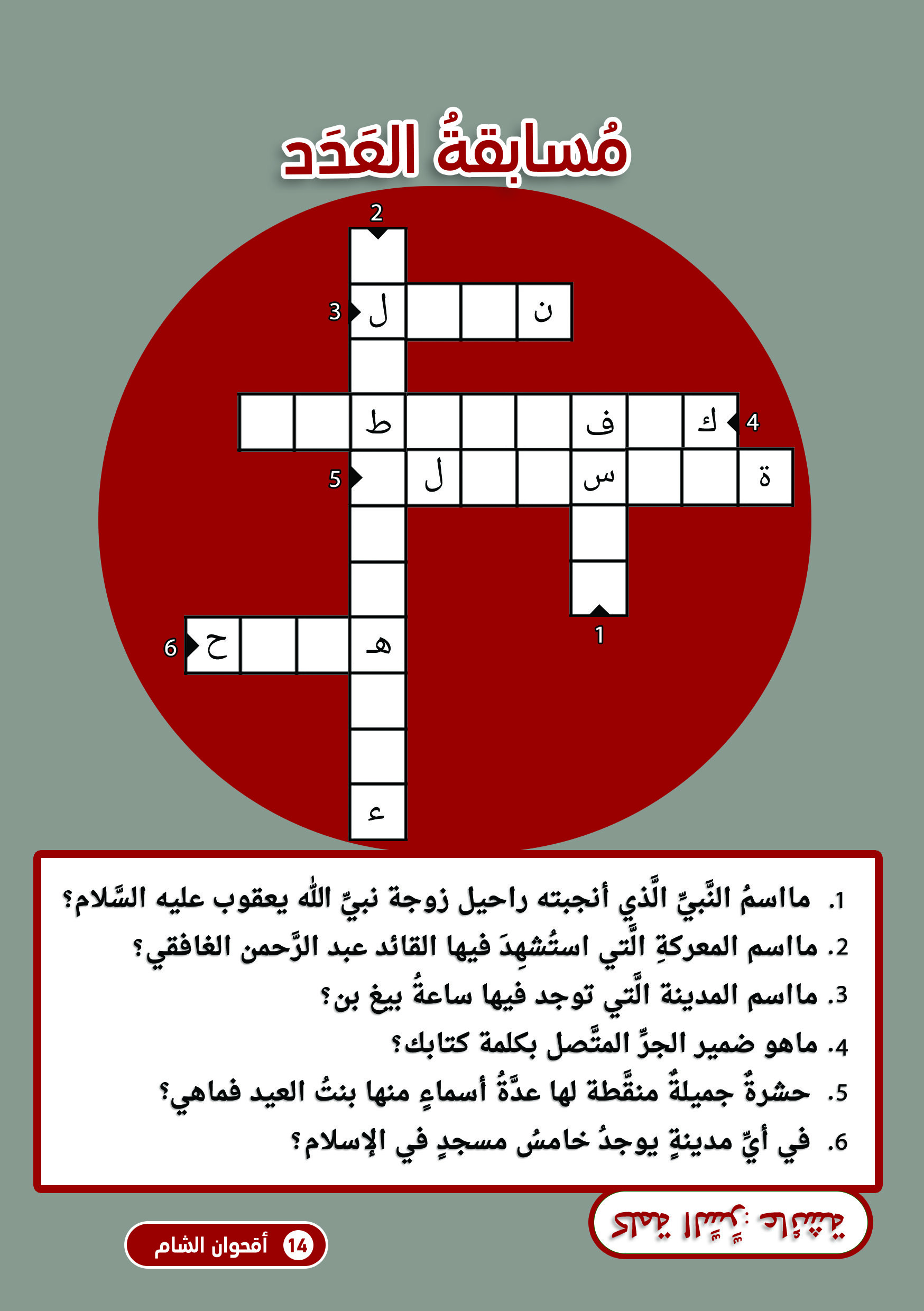 تم بفضل الله وحمده صدور العدد الثاني من الإصدار الثالث من مطوية أقحوان الشام، وهي تحوي مواضيع مفيدة وممتعة حيث تحدثت في هذا العدد عن الجزء الأخير من قصة نبي الله يعقوب عليه السلام، وعن قائد معركة بلاط الشهداء بالإضافة إلى صفحات أخرى مميزة أتمنى لكم قراءة ممتعة ومفيدة.