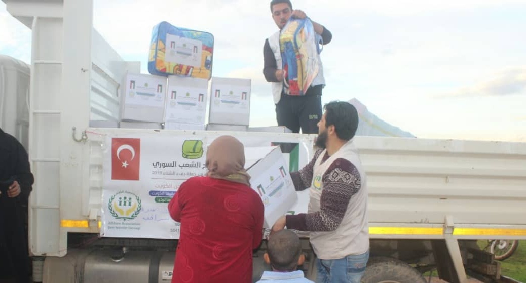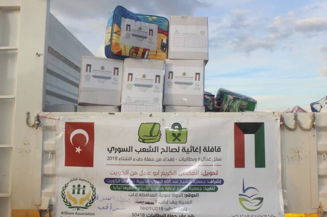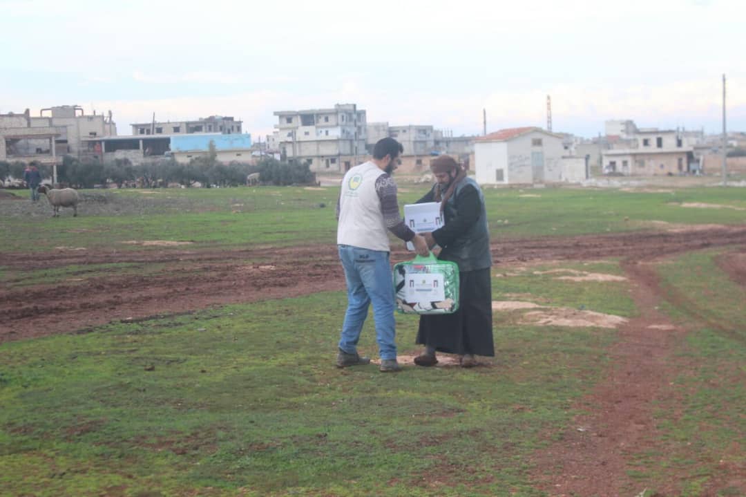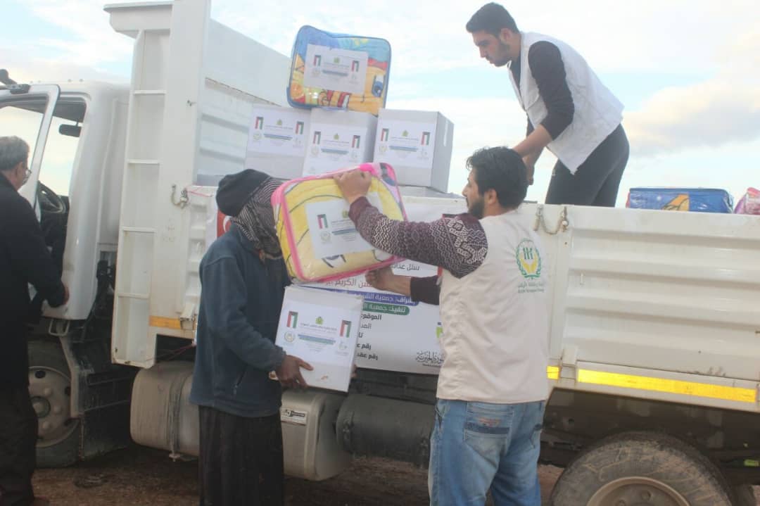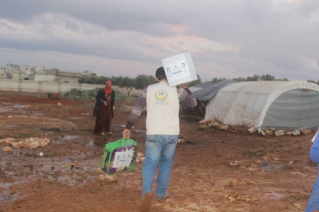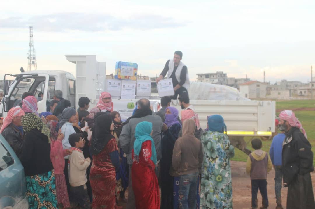توزيع 100 سلة غذائية و100 بطانية فاخرة لعوائل الايتام النازحين بسراقب