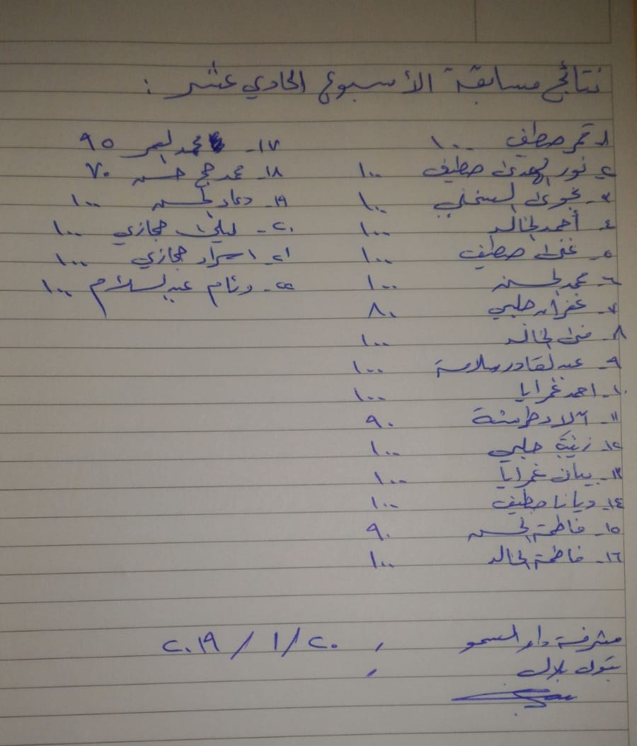 ملاحظة: هذه المسابقة تقام بكل الدور اسبوعيا وللفائزين جوائز حسب مايتوفر من مكافئات لدى ادارة الدار