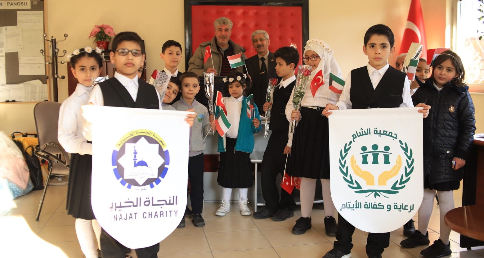 أطفالنا بدار أم النوري النوري ببورصة يقدمون شكرهم وتقديرهم لمختار حي تشنار اونو (حي الوقف) ويقدمون وورود وحلوى وشكره على وقفته معنا وخدمته للايتام وللسوريين