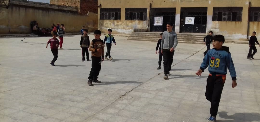 احد فصول مدرسة الشام ببلدة كللي يلعبون كرة القدم في حصة الرياضة