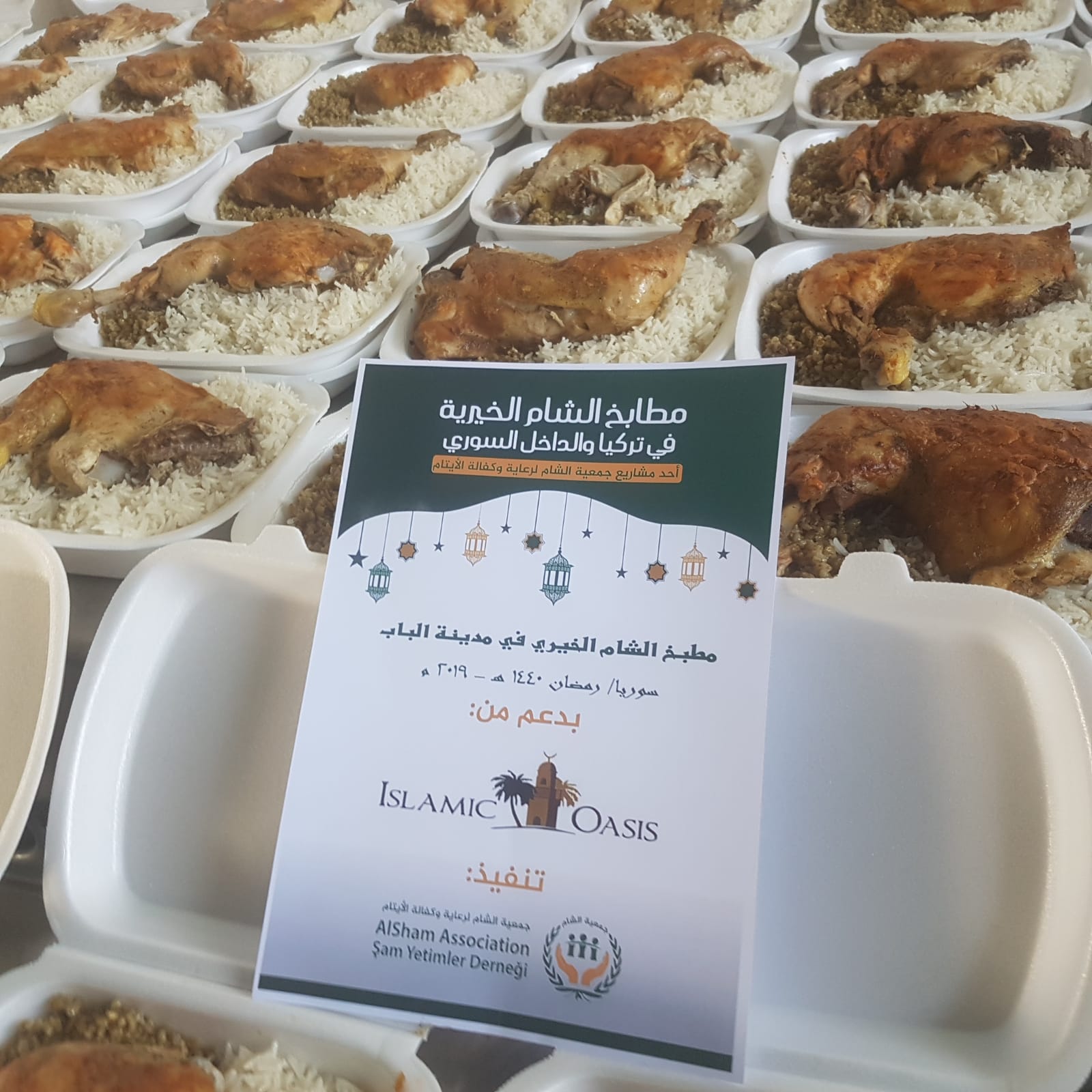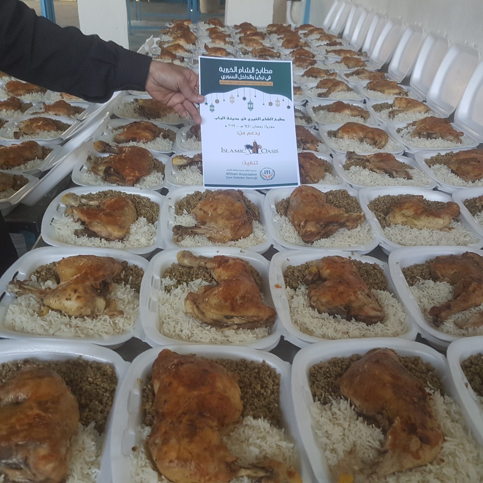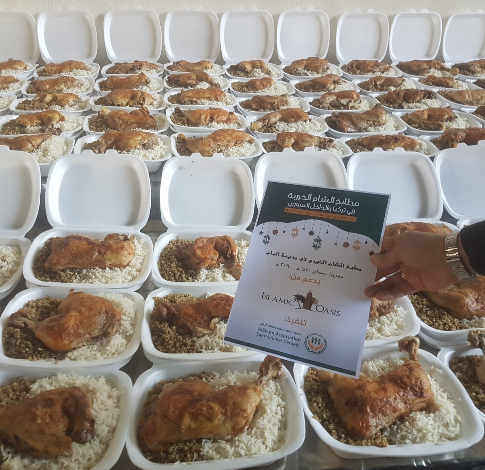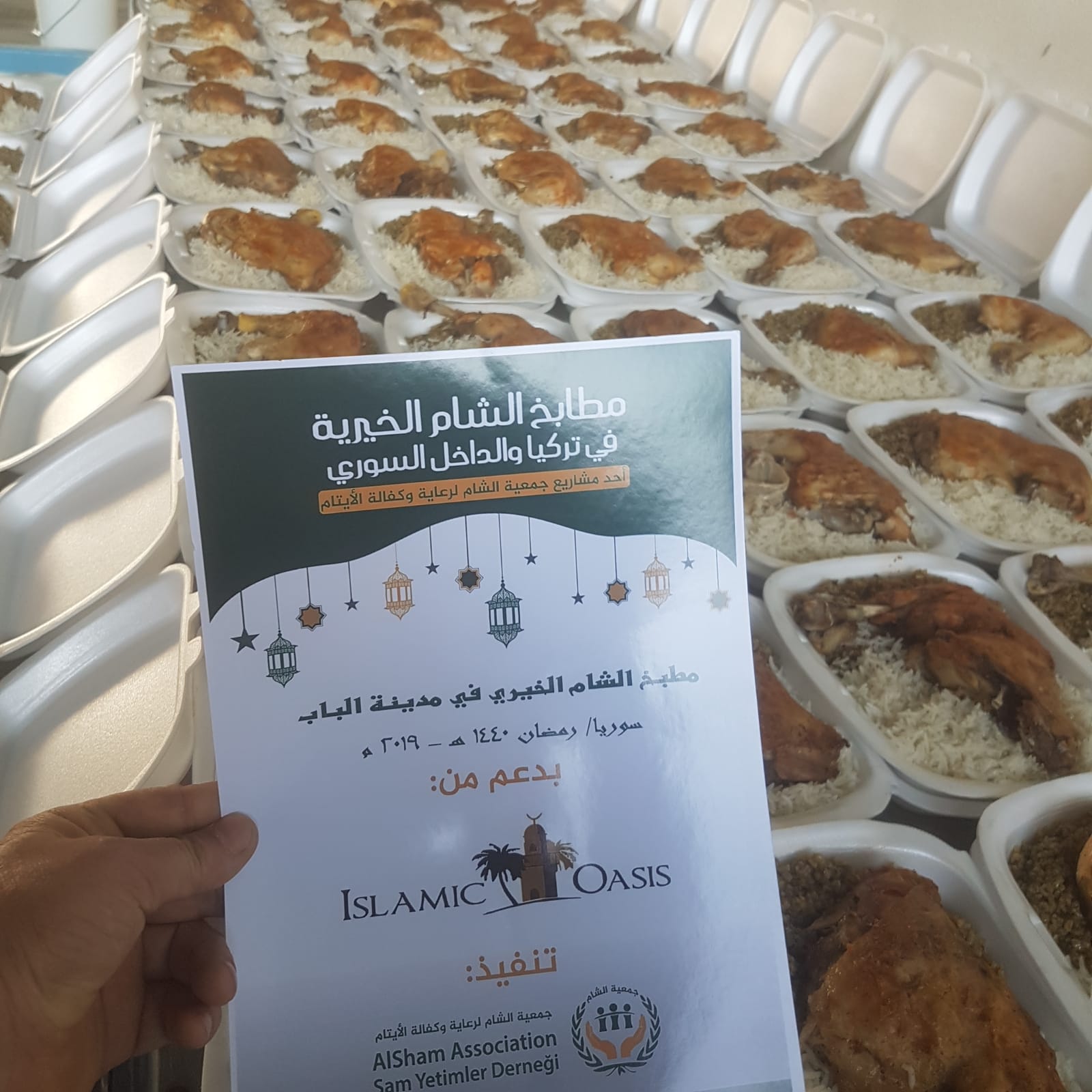 في ثاني يوم برمضان توزيع ١٠٠ وجبة على عوائل الأيتام النازحين والمهجرين إلى مدينة الباب في الشمال السوري بدعم من اسلاميك اويسيس بريف حلب بمنطقة درع الفرات