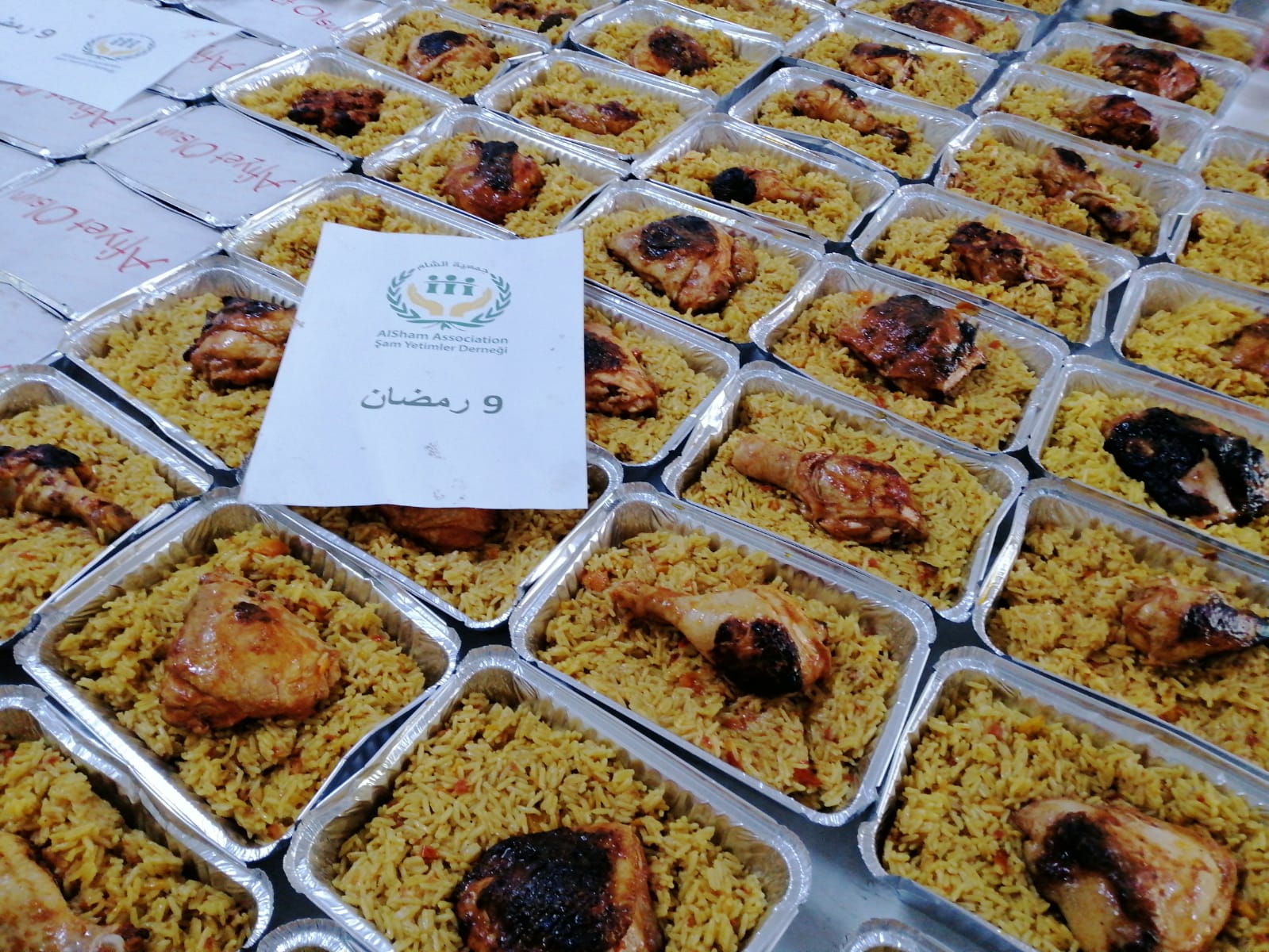 مطبخ الشام في مدينة غازي عنتاب يقدم في رمضان بشكل يومي وكان عدد الوجبات اليوم 1000 وجبة تكفي كل وجبة شخصين على العوائل في غازي عنتاب