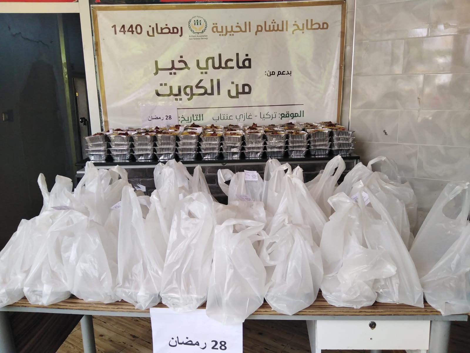 توزيع وجبات على العوائل من مطبخ الشام الخيري بعنتاب
