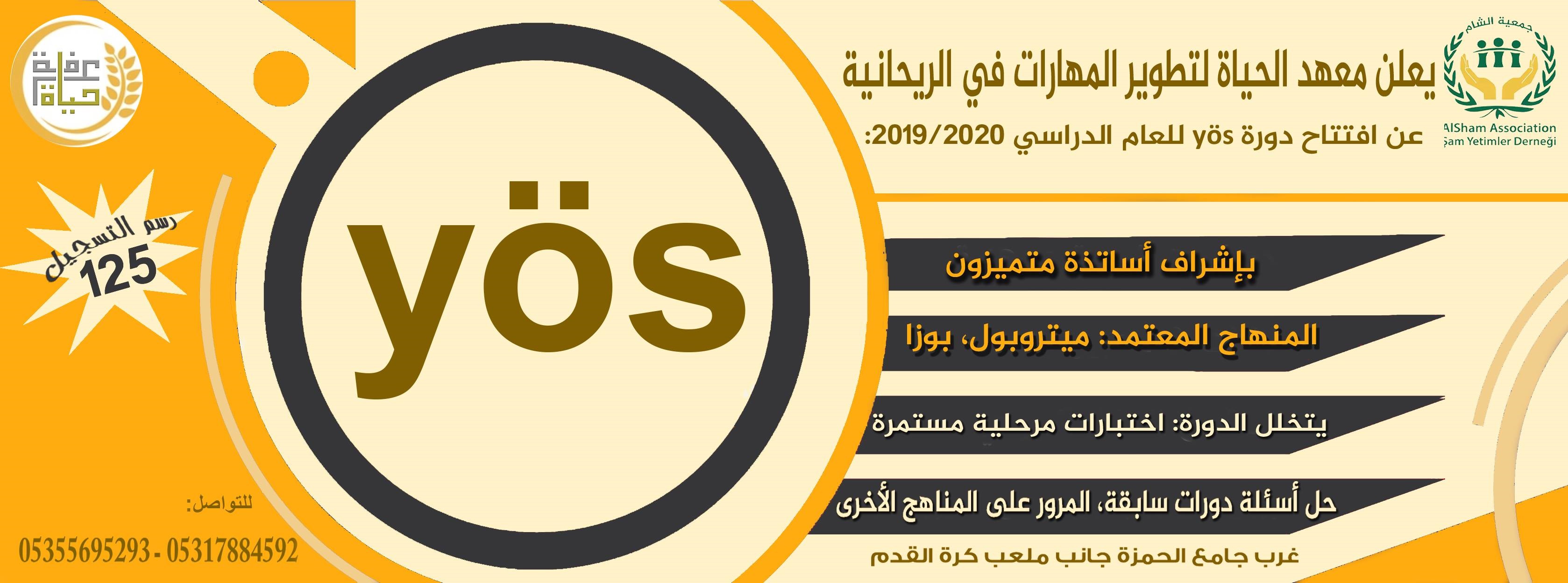 يعلن معهد الحياة لتطوير المهارات في الريحانية عن التسجيل لدورة الـ yös للعام الدراسي 2019/2020 من تاريخ اليوم وبإشراف اساتذة متميزون