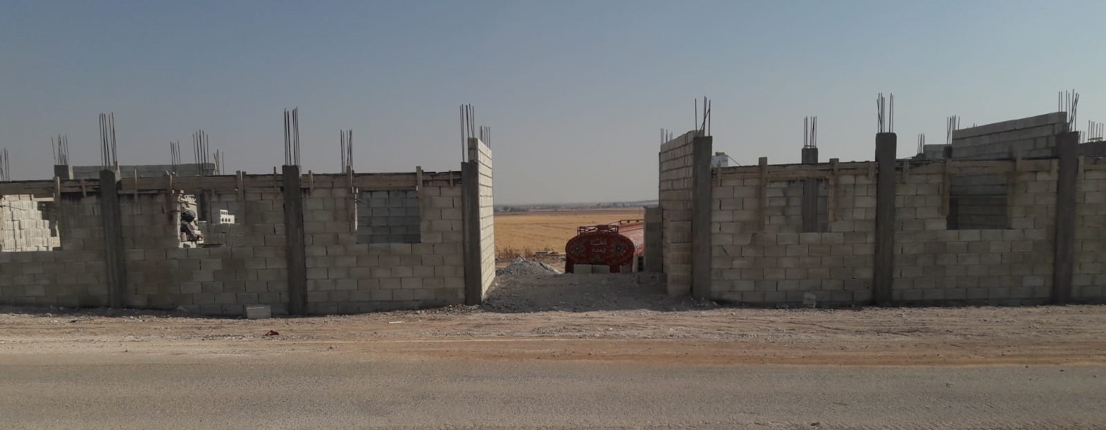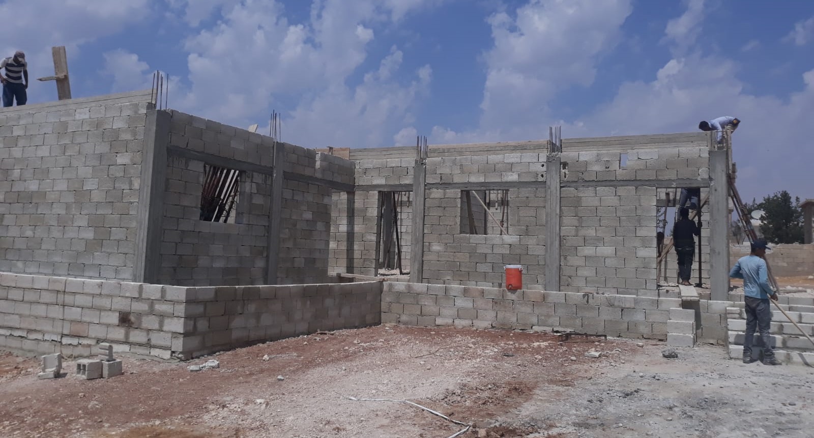 صب سقف مدرسة الشام4 في قرية الجكه