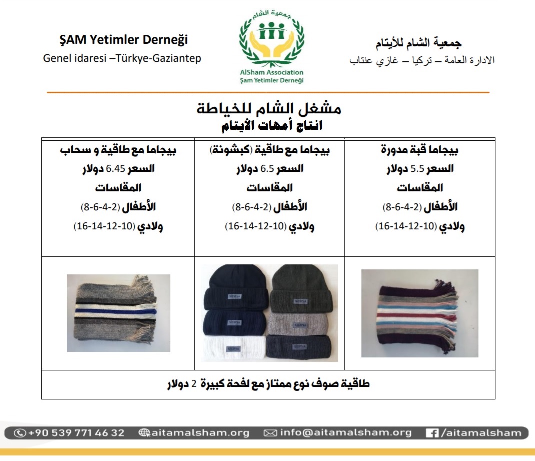 مشغل الشام للخياطة في غازي عنتاب المشغل من انتاج الامهات وريعه للأيتام وامهاتهم