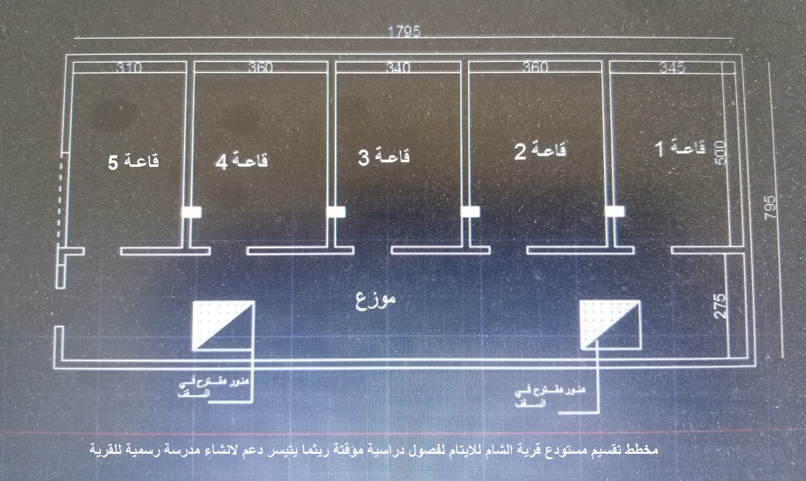 بحمد الله وتوفيقه تم اطلاق مدرسة نون الابتدائية بقرية الشام بسرمدا لحاجة ابنائنا الاطفال بالقرية لمدرسة لعدم وجود شاغر بمدارس سرمدا ونسعى لتأمين دعم لبناء مدرسة رسمية للأطفال من القرية ومن خارج القرية