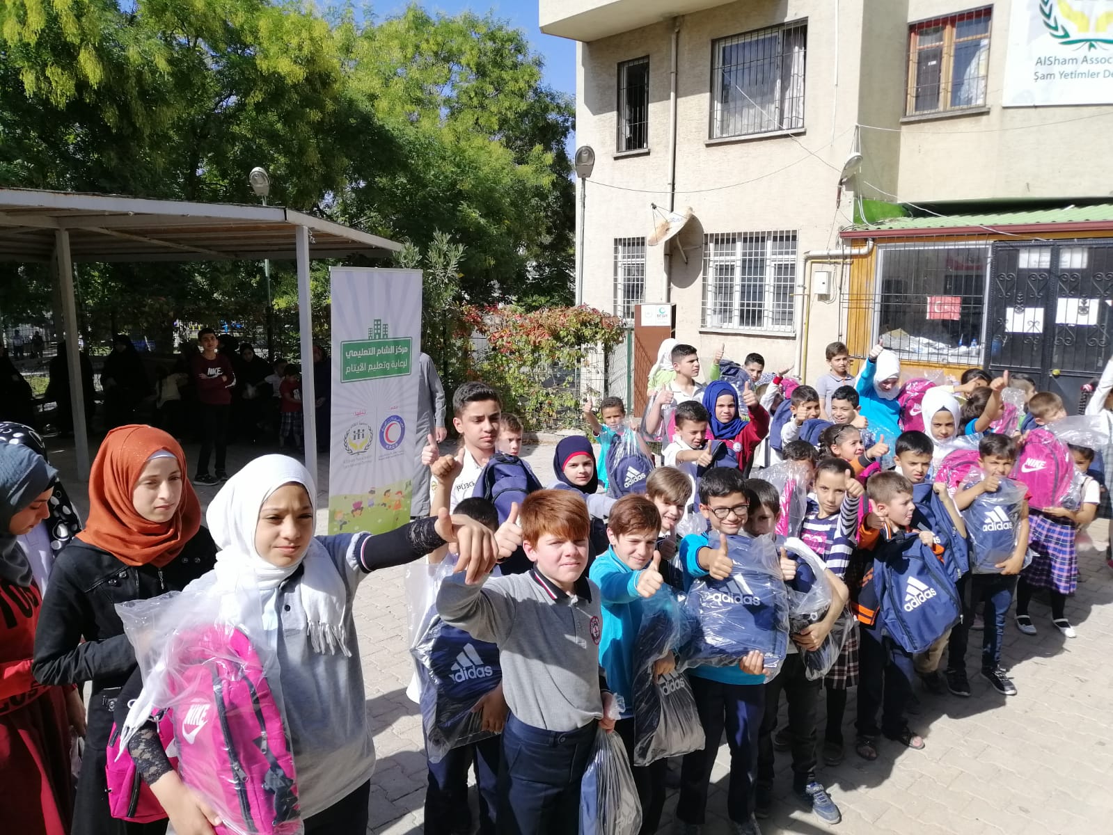 توزيع الالبسة المدرسية و الحقائب و القرطاسية لـ 150 طالب من طلاب النادي الصيفي من الايتام بغازي عنتاب