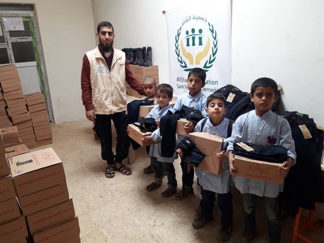 توزيع حقائب وقرطاسية على طلابنا الايتام في مدرسة نون بقرية الشام للأيتام بسرمدا بتاريخ ٣٠/١٠/٢٠١٩