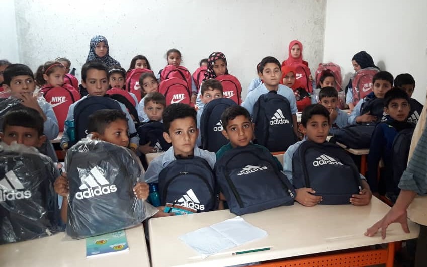 توزيع لباس وحقائب وقرطاسية على طلابنا في مدرسة نون