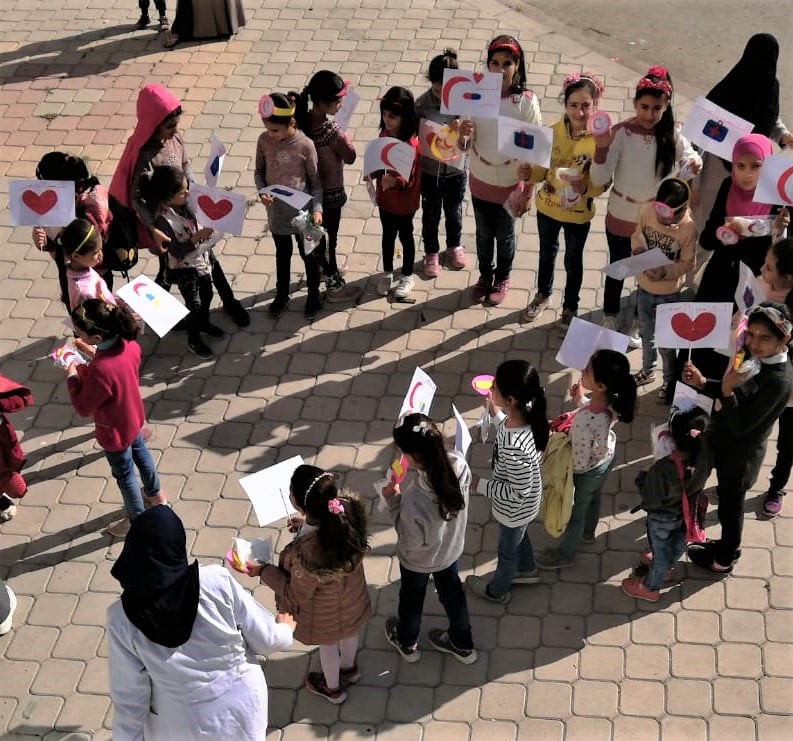 بهدف توعية الاطفال بمبادئ الاسعافات الاولية وتاهيلهم للتعامل مع الحالات الطارئة وتدريبهم على سبل السلامة العامة.