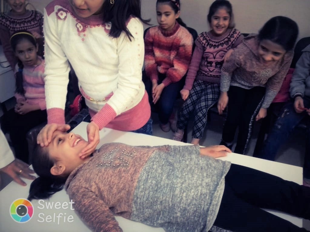 تعلم خلالها الأطفال؛على اسعاف الجروح، ونزيف الانف والحروق والتسمم والغصةوبلع اللسان.