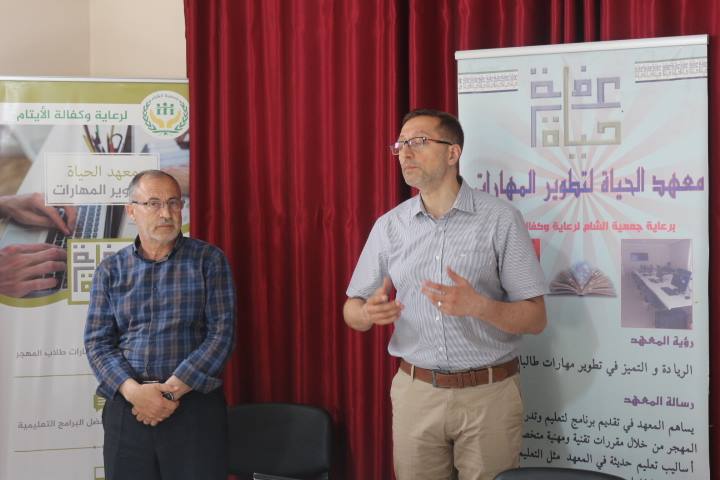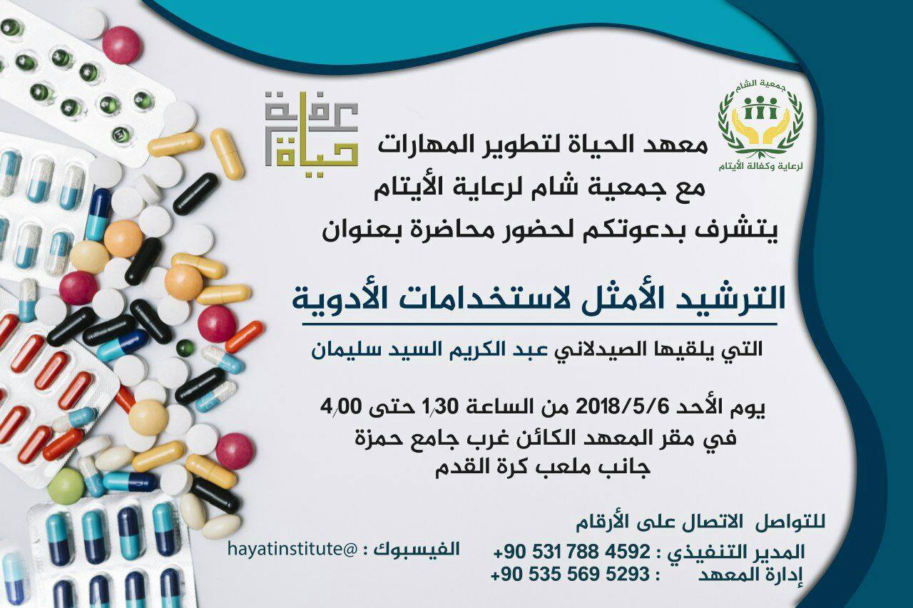 محاضرة للصيدلاني عبد الكريم السيد سليمان عن الترشيد الأمثل لاستخدامات الادوية في معهد الحياة للتعليم المهني التابع لجمعية الشام للأيتام في مدينة الريحانية التركية