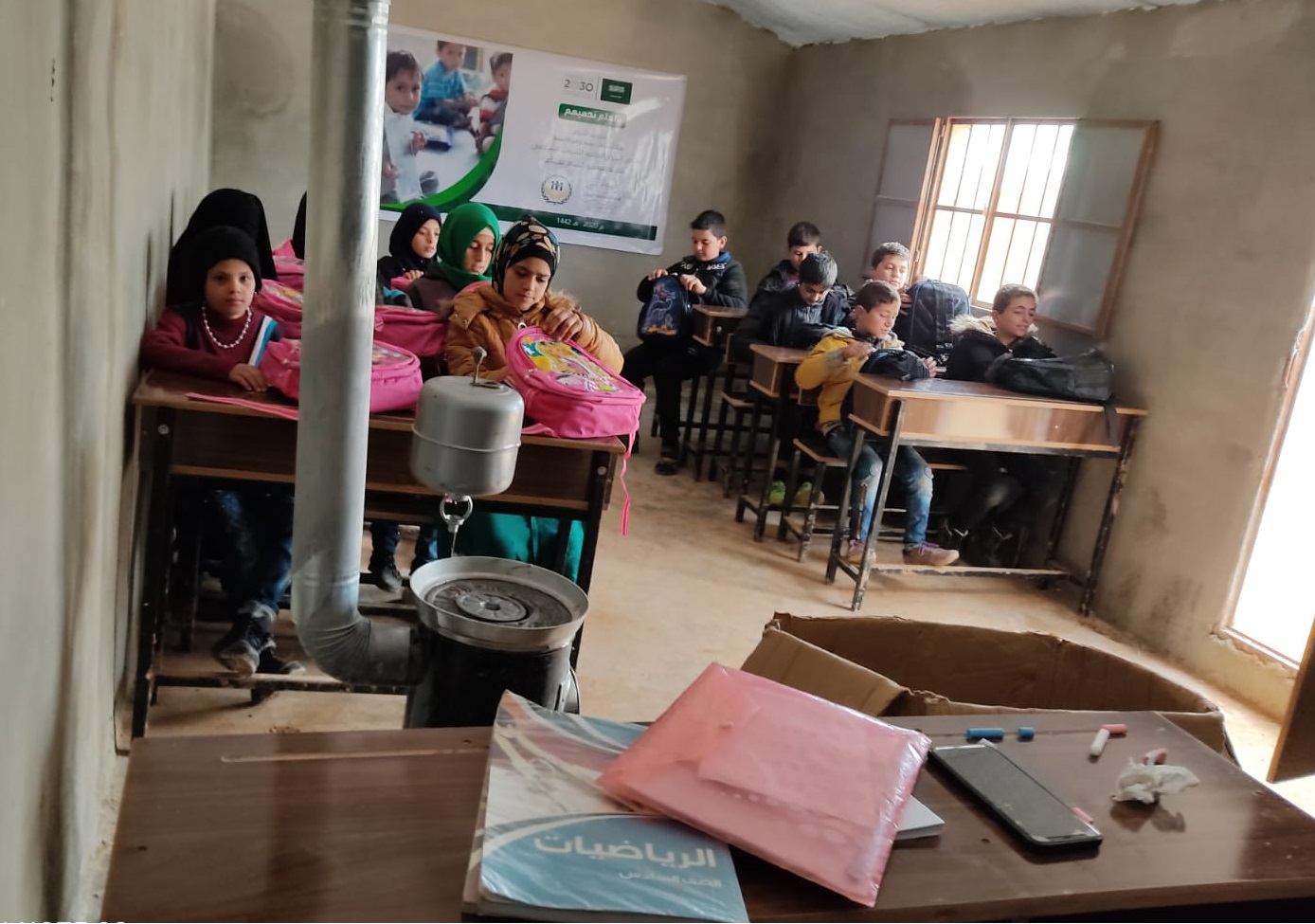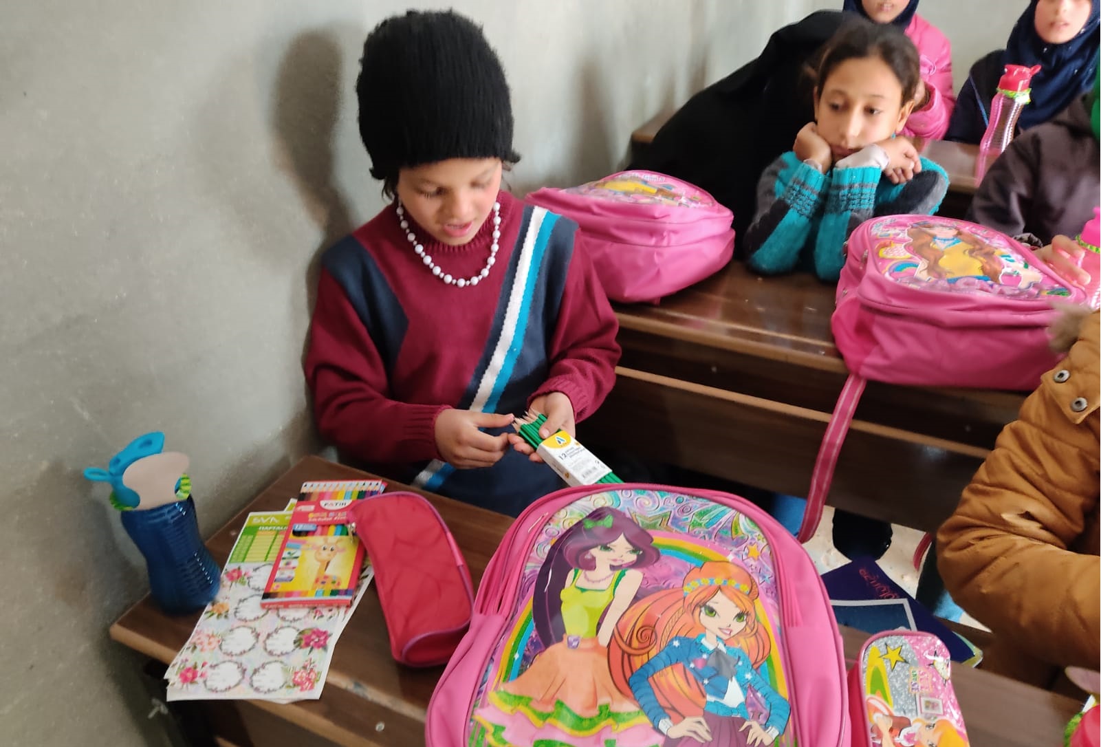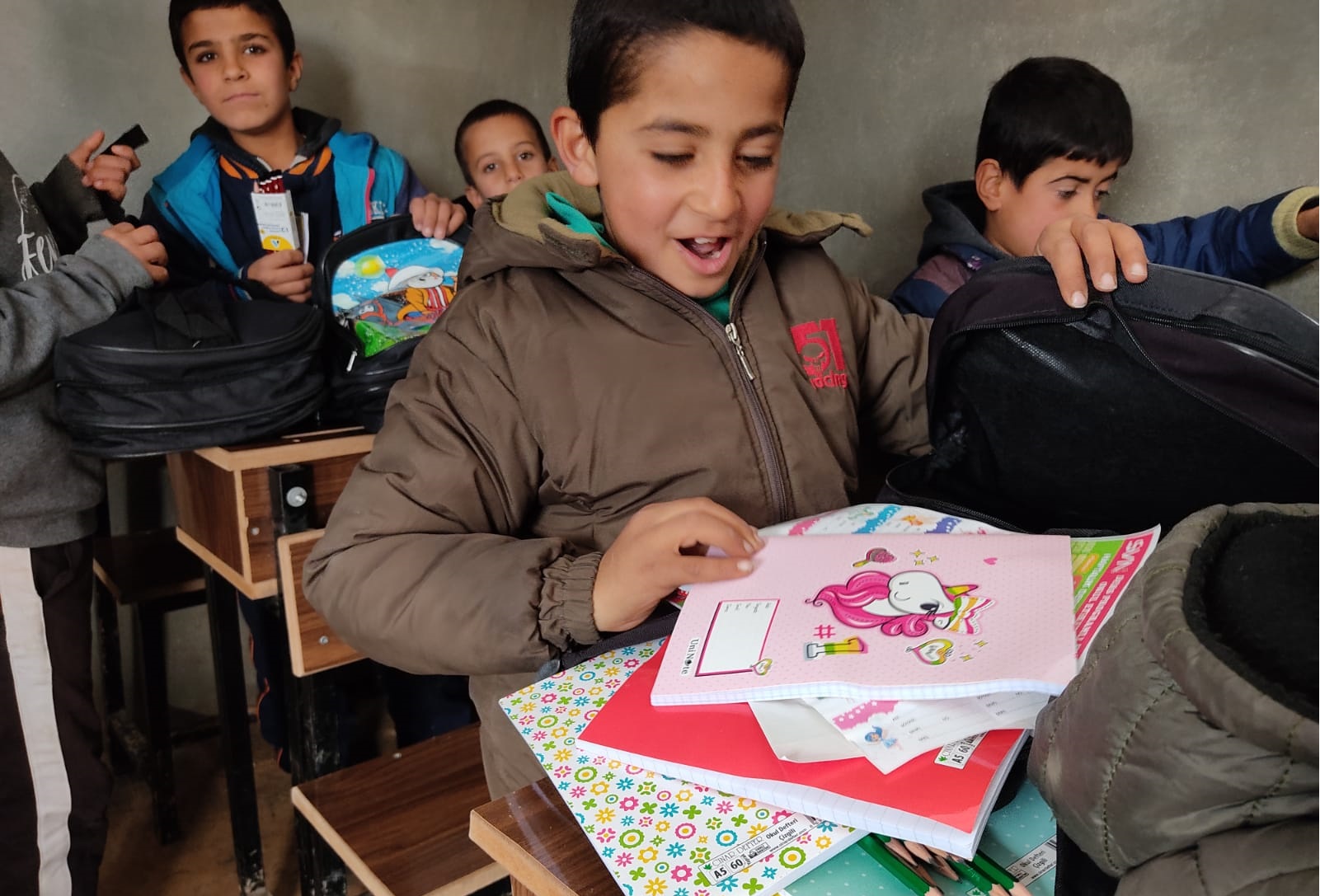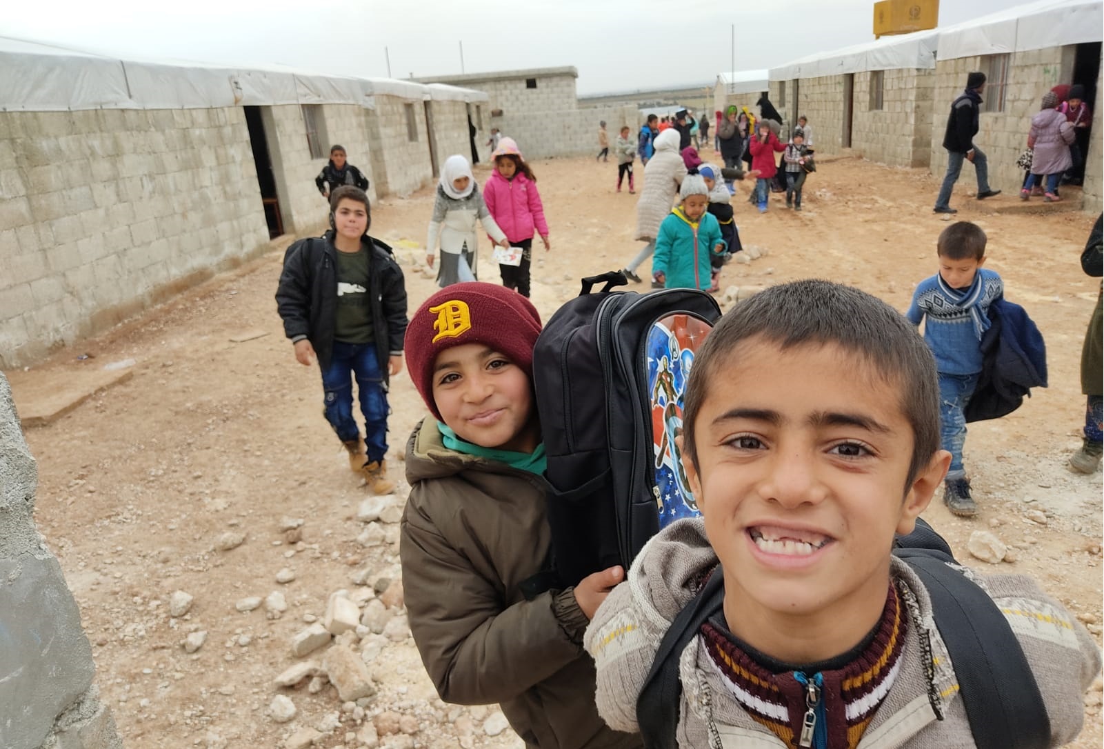 توزيع حقائب على أبنائنا وبناتنا الأيتام في مدرسة الشام الابتدائية في قرية الأيتام في تركمان بارح