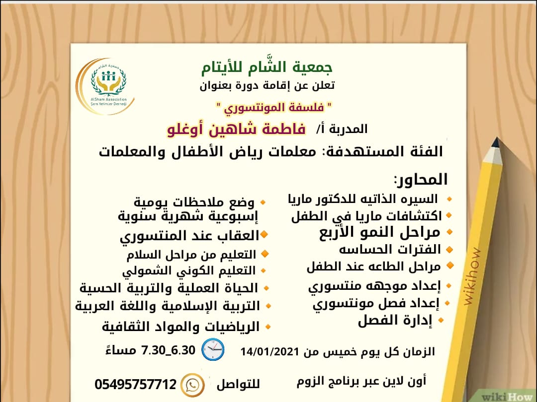 بعنوان: فلسفة المونتسوري للمدربة الأستاذة فاطمة شاهين أوغلو