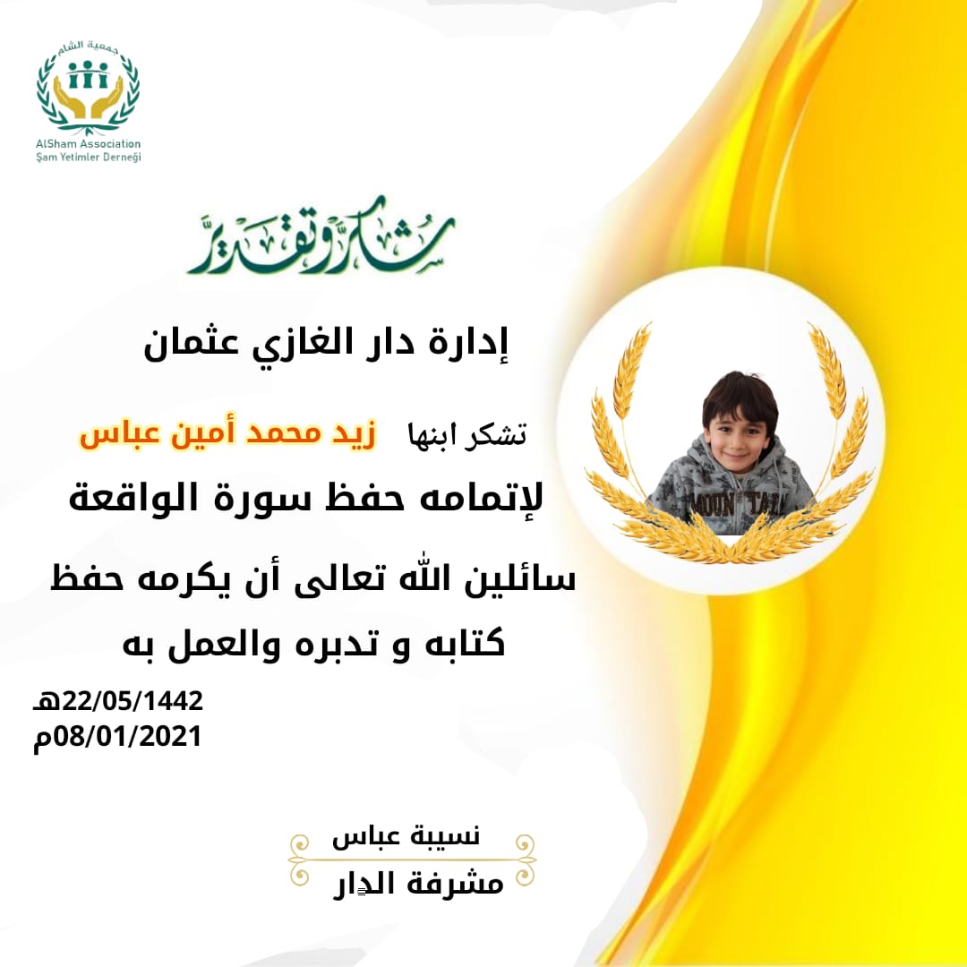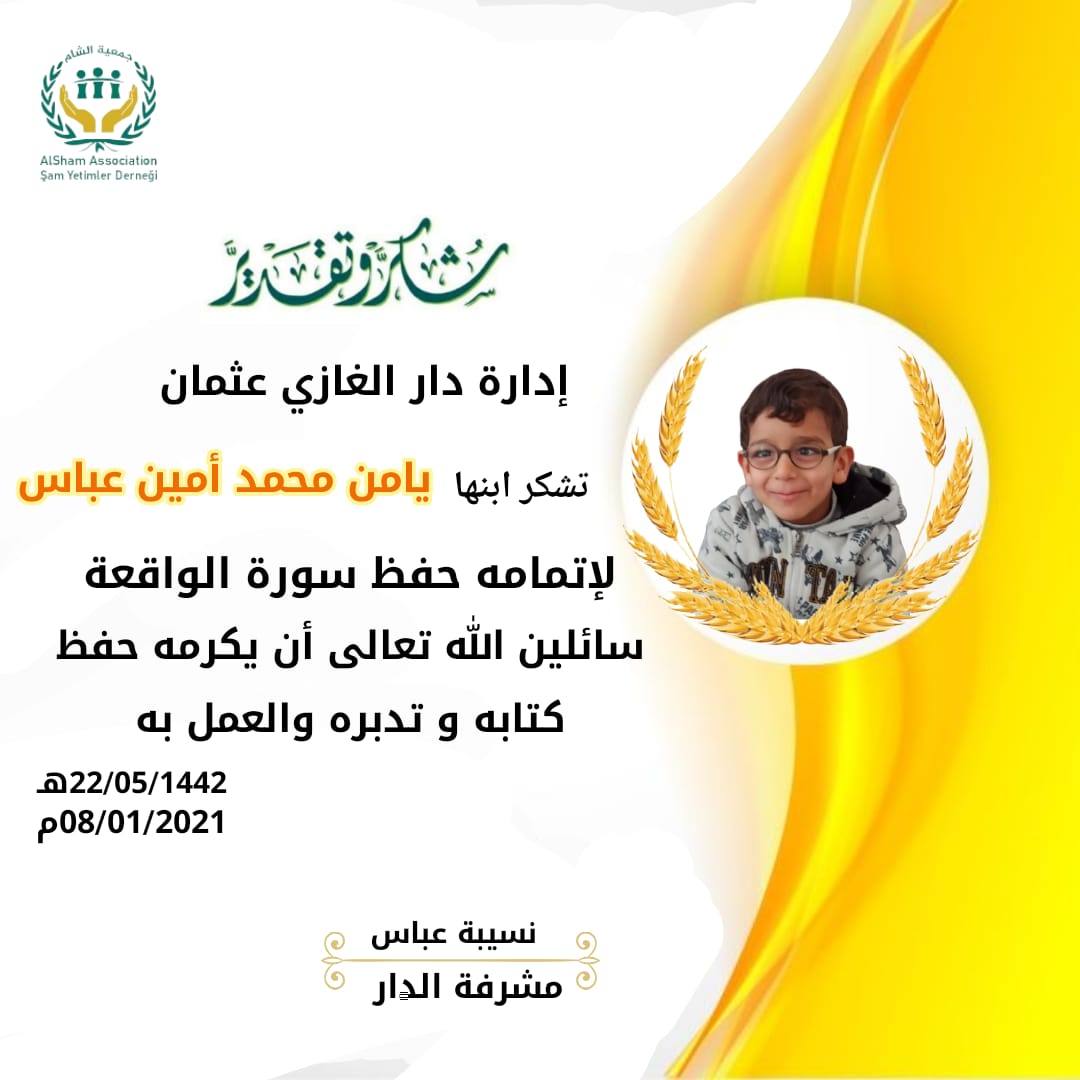 شكر وتقدير للناجحين بعد سبر سورة الواقعة لبراعمنا في دار السلطان الغازي عثمان