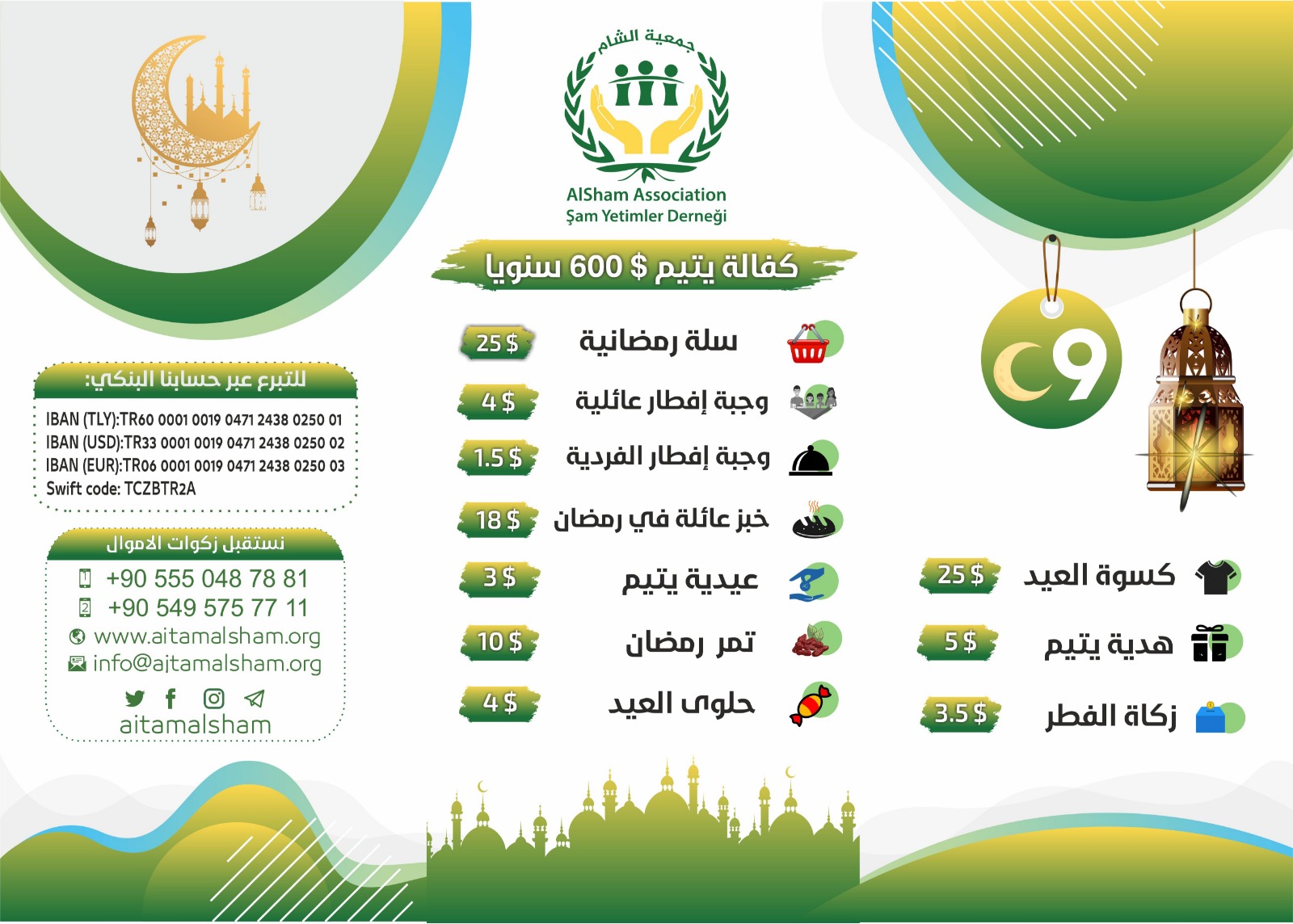 لذا أطلقت جمعيةُ الشامِ للأيتام حملتها في شهر الخيرِ شهرِ رمضانَ المباركِ لهذا العام؛ وتحت شعار: