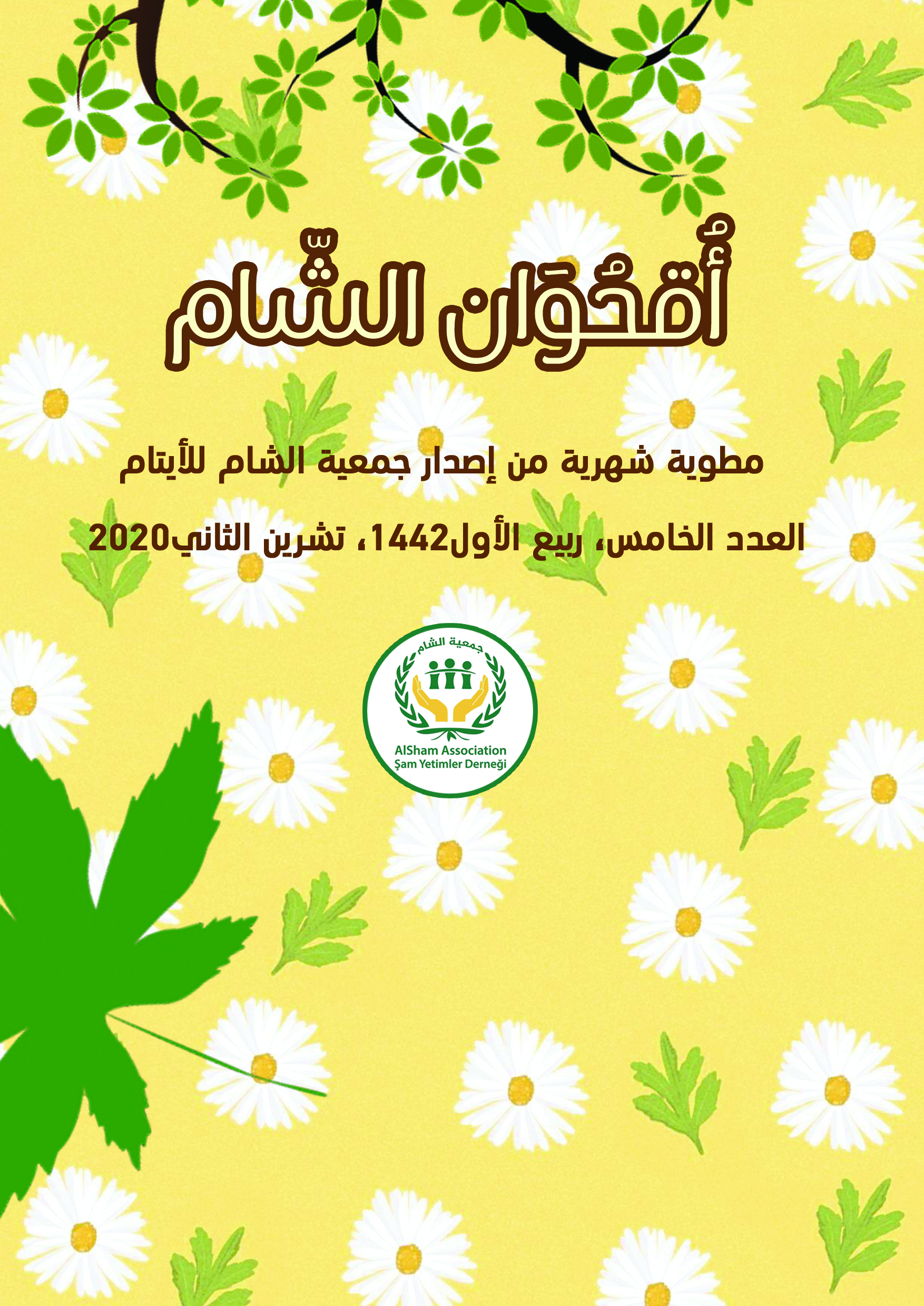 بحمد الله وتوفيقه تم اصدار العدد الخامس من مجلة اقحوان الشام وهي مجلة شهرية تستهدف اليافعين من عمر 7 الى 13 سنة وهي علمية تعلمية شرعية تربوية ثقافية ترفيهية