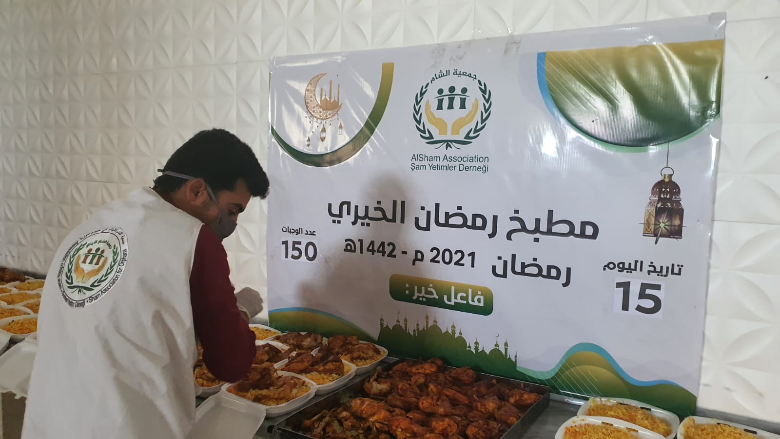 يقدم مطبخ الشام الخيري في سرمدا يوميا 400 وجبة عائلية منها 150 وجبة من فاعل خير