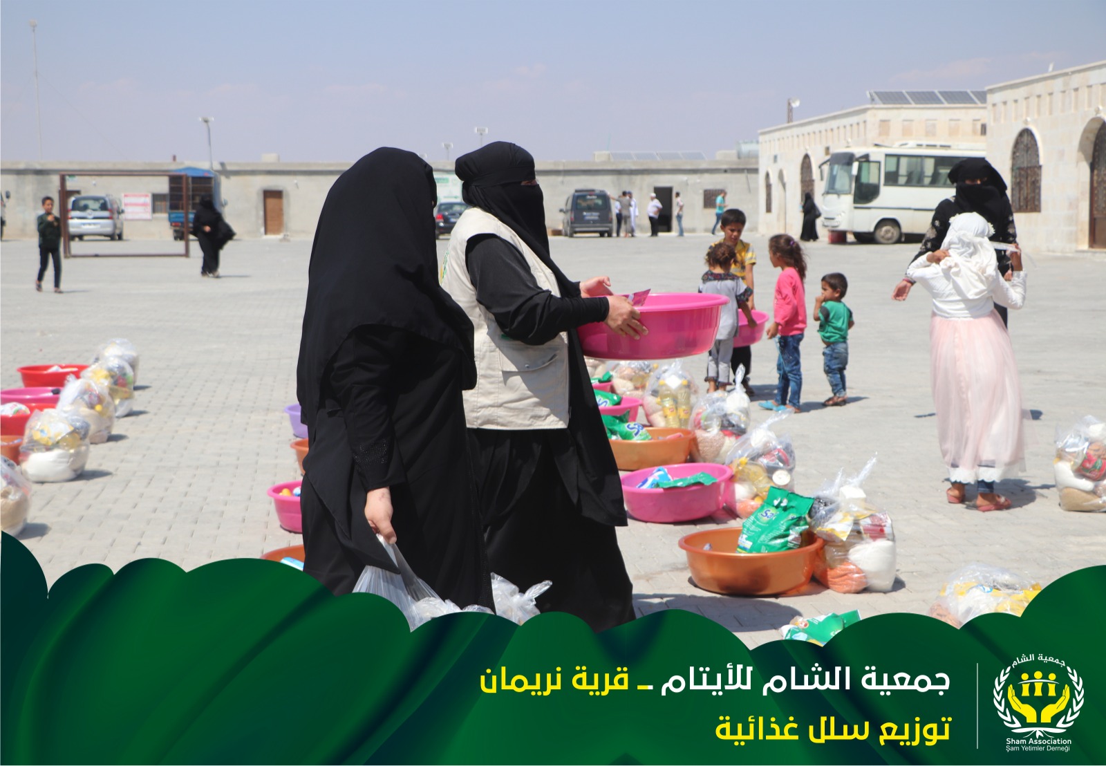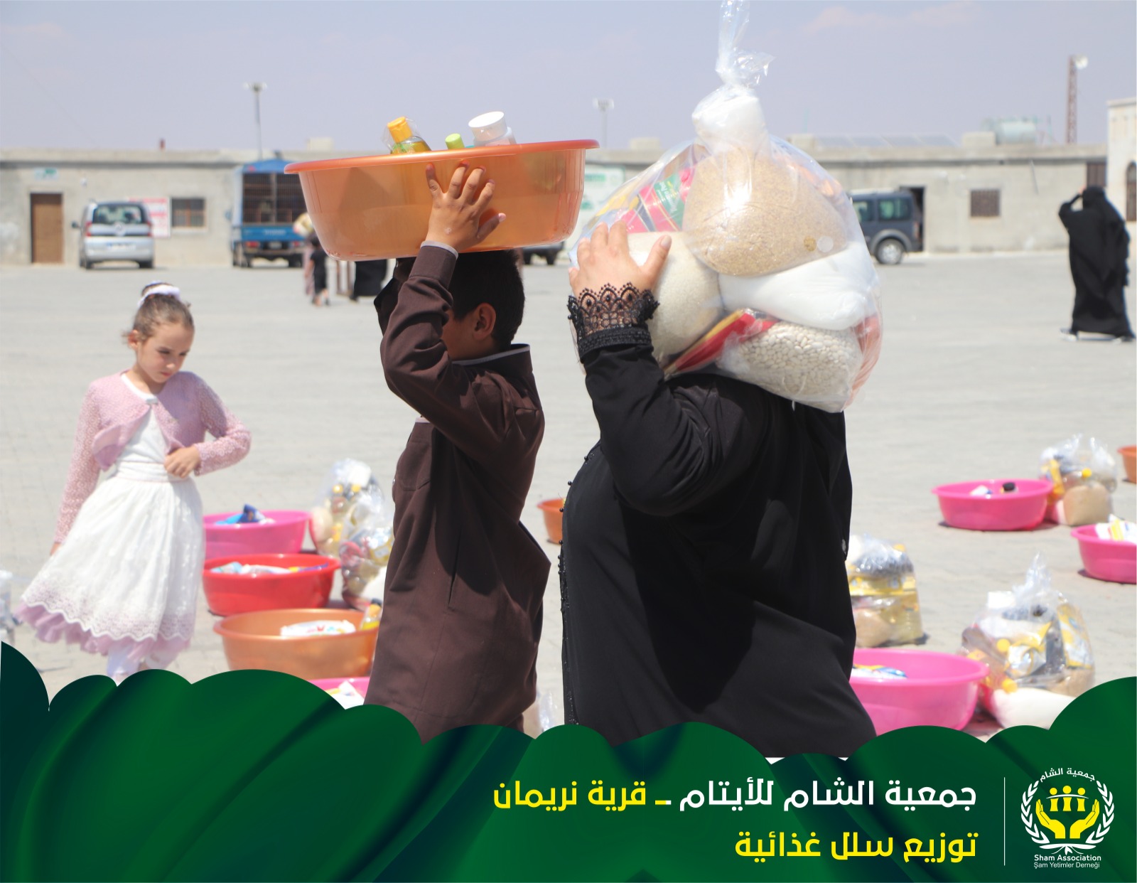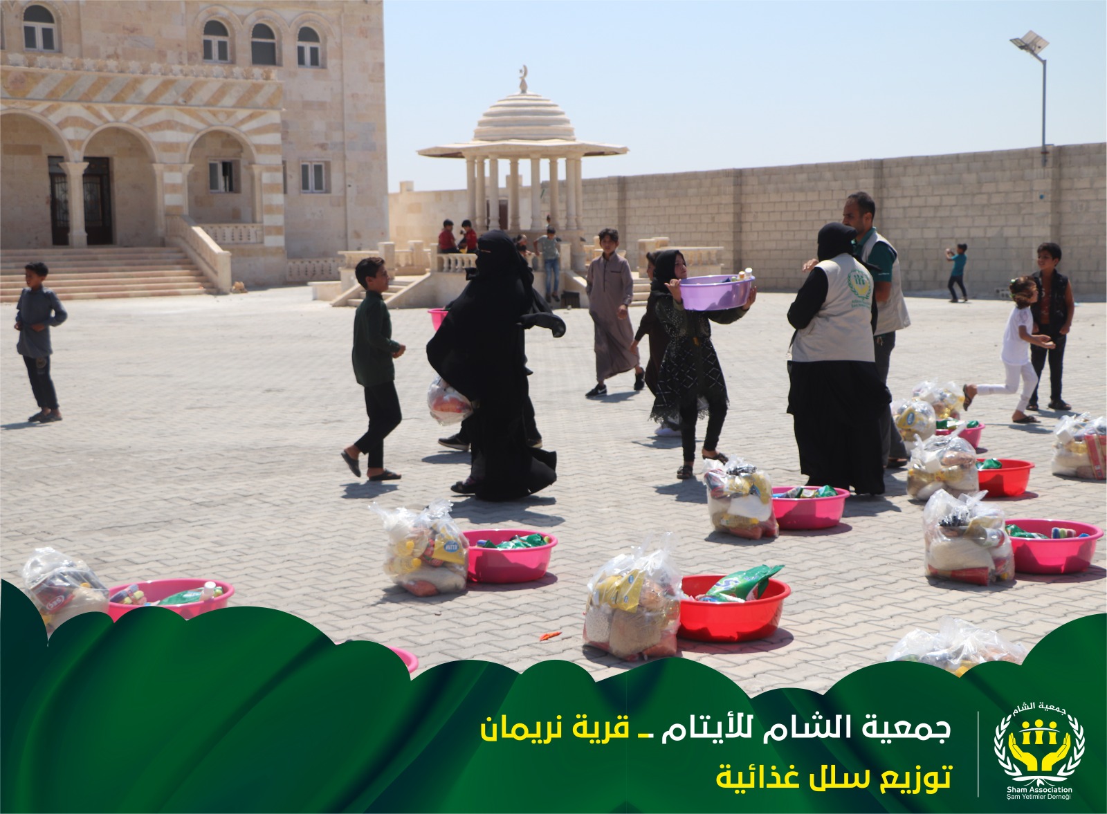 توزيع سلل غذائية وسلل نظافة على عوائل الايتام بقرية نريمان رحمها الله