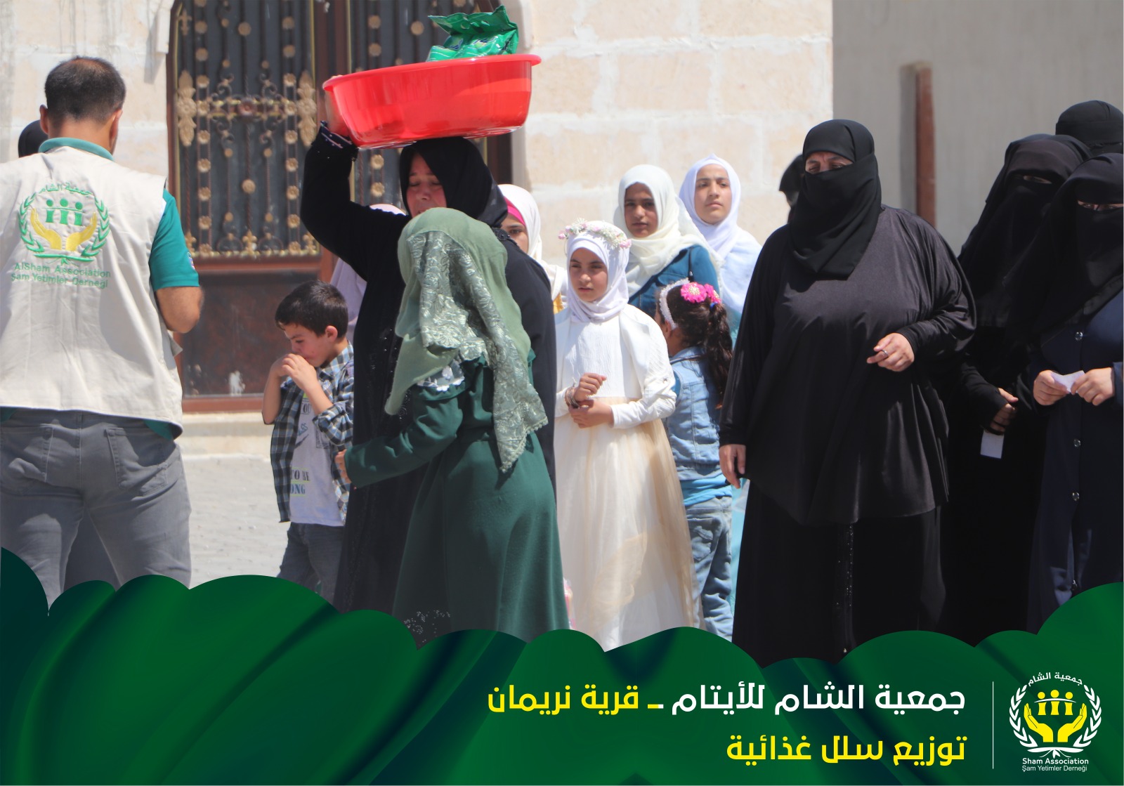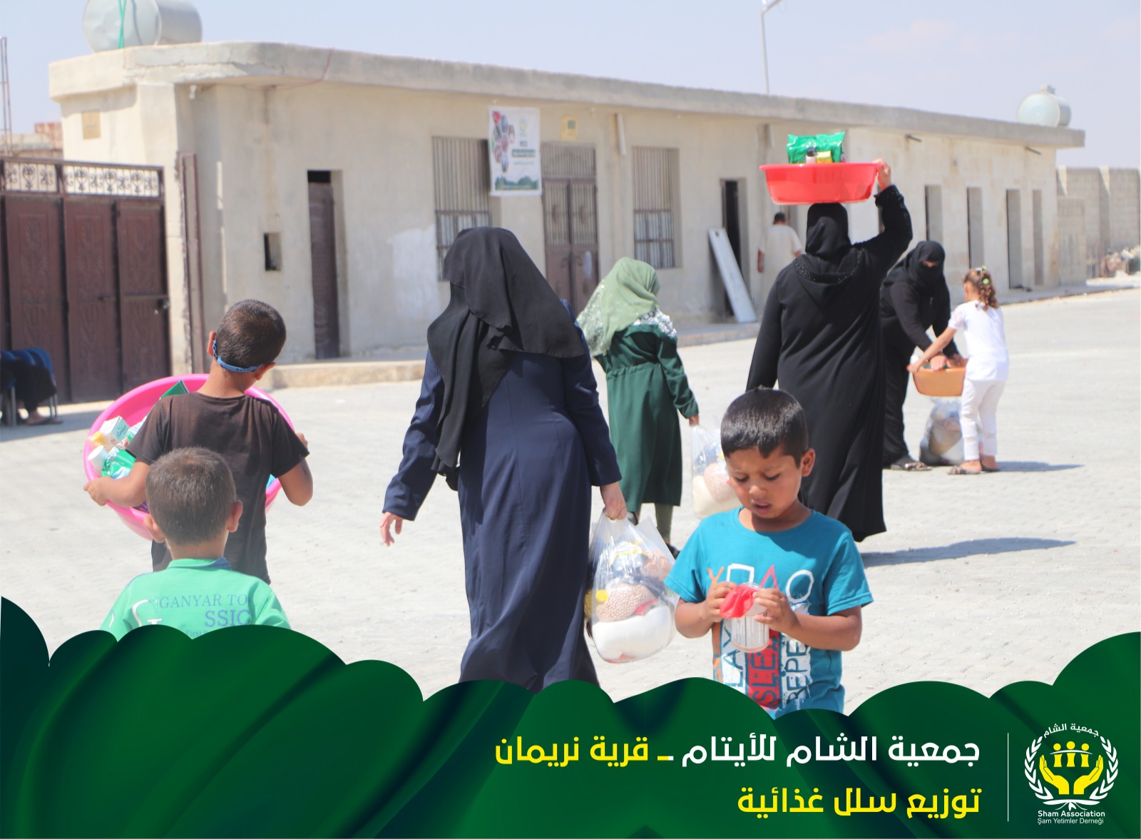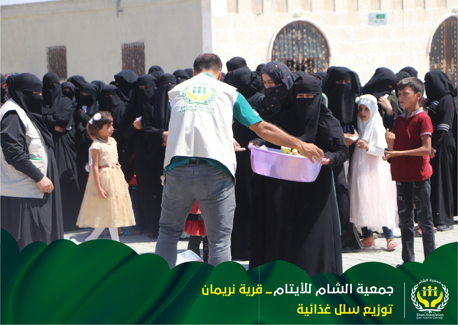 توزيع سلل غذائية وسلل نظافة على عوائل الايتام بقرية نريمان رحمها الله